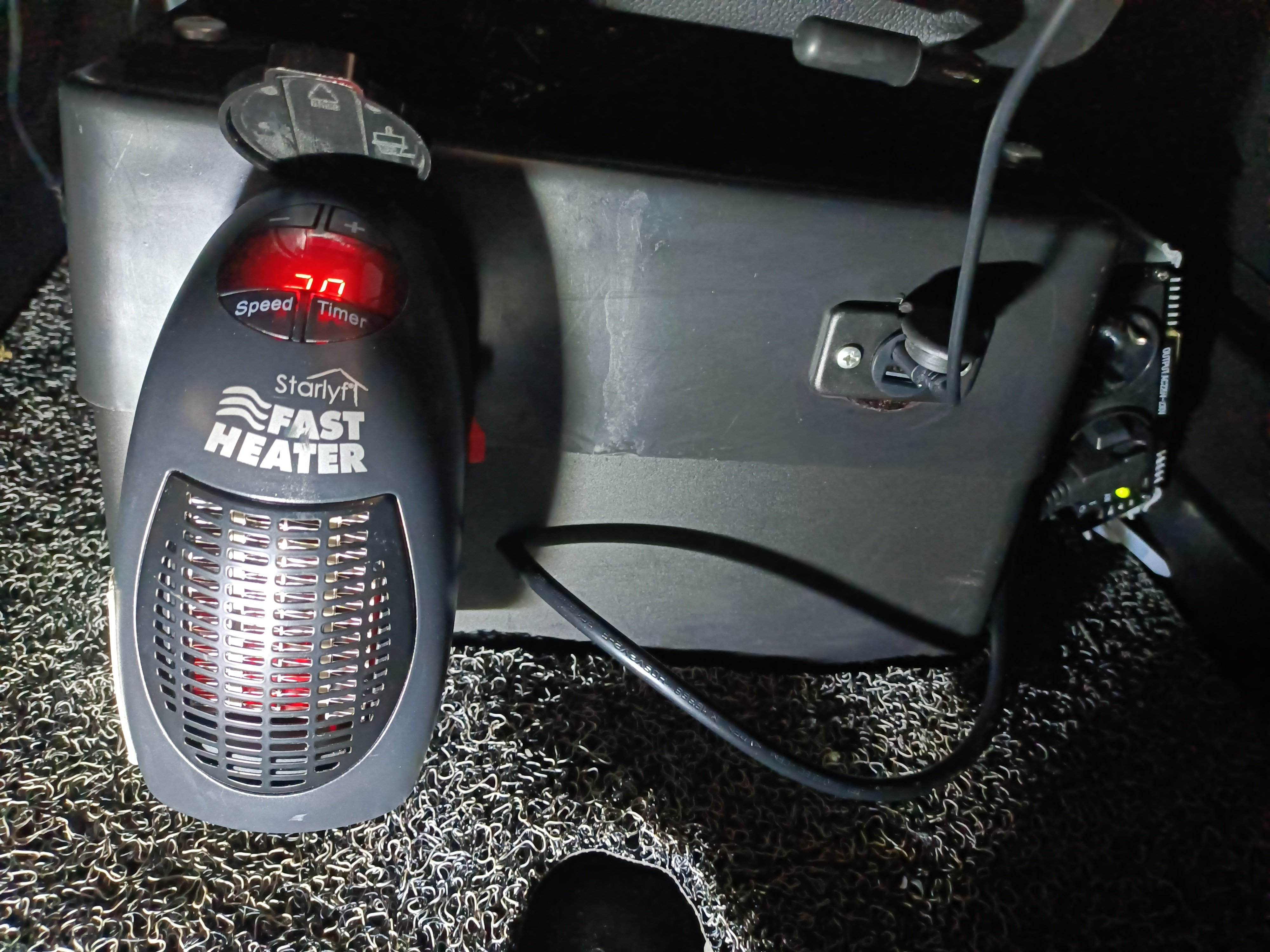 Mit der kann ich wahlweise über einen Spanungswandler und Zusatzbatterie (hinten Sitz) meine Zusatzheizung laufen lassen,