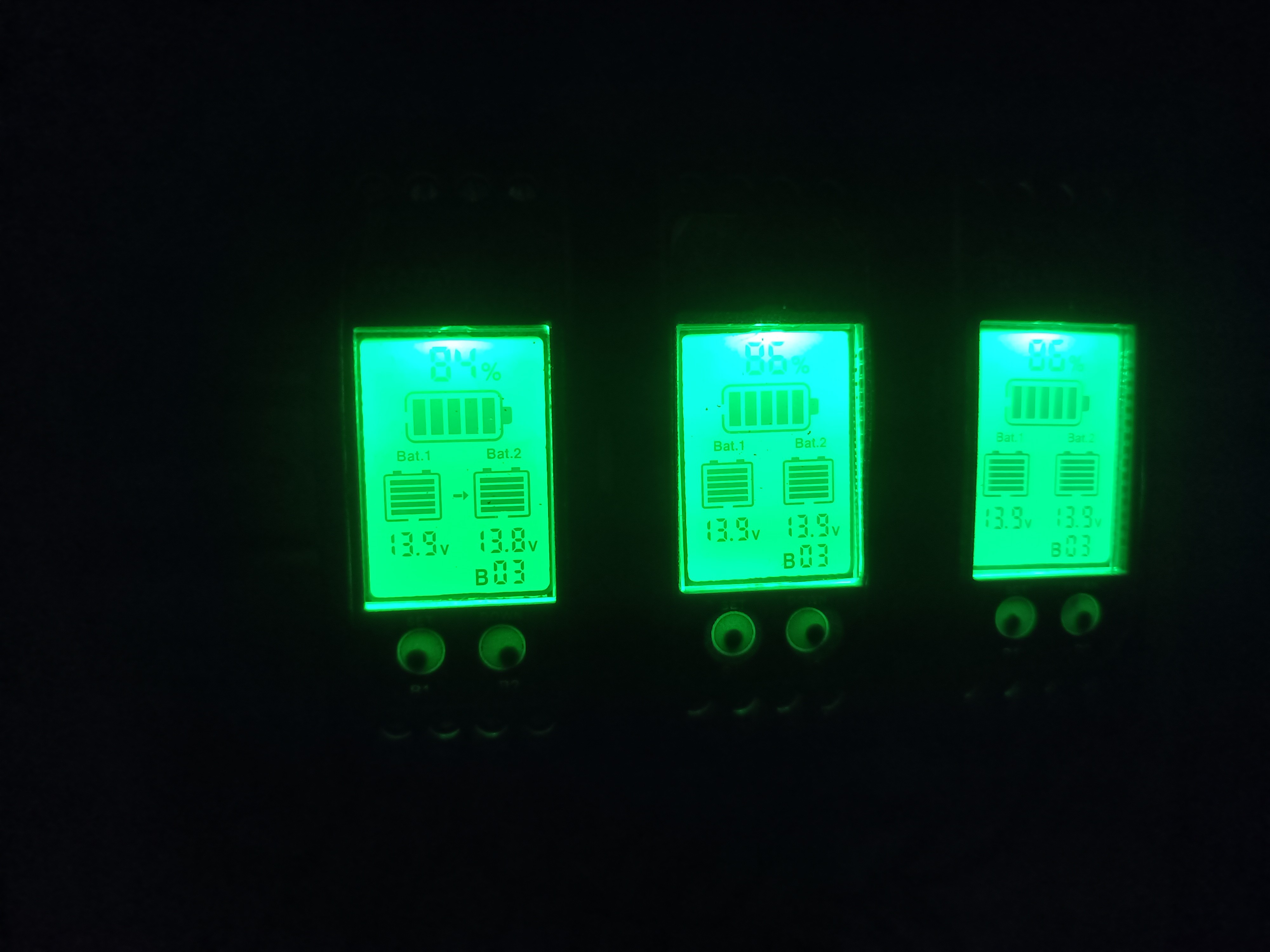 Es werden immer zwei Batterie an einen Regler abgeschlossen. Die Regler werden in einen Art Bus untereinander verbunden. Theoretisch unendlich viele möglich.