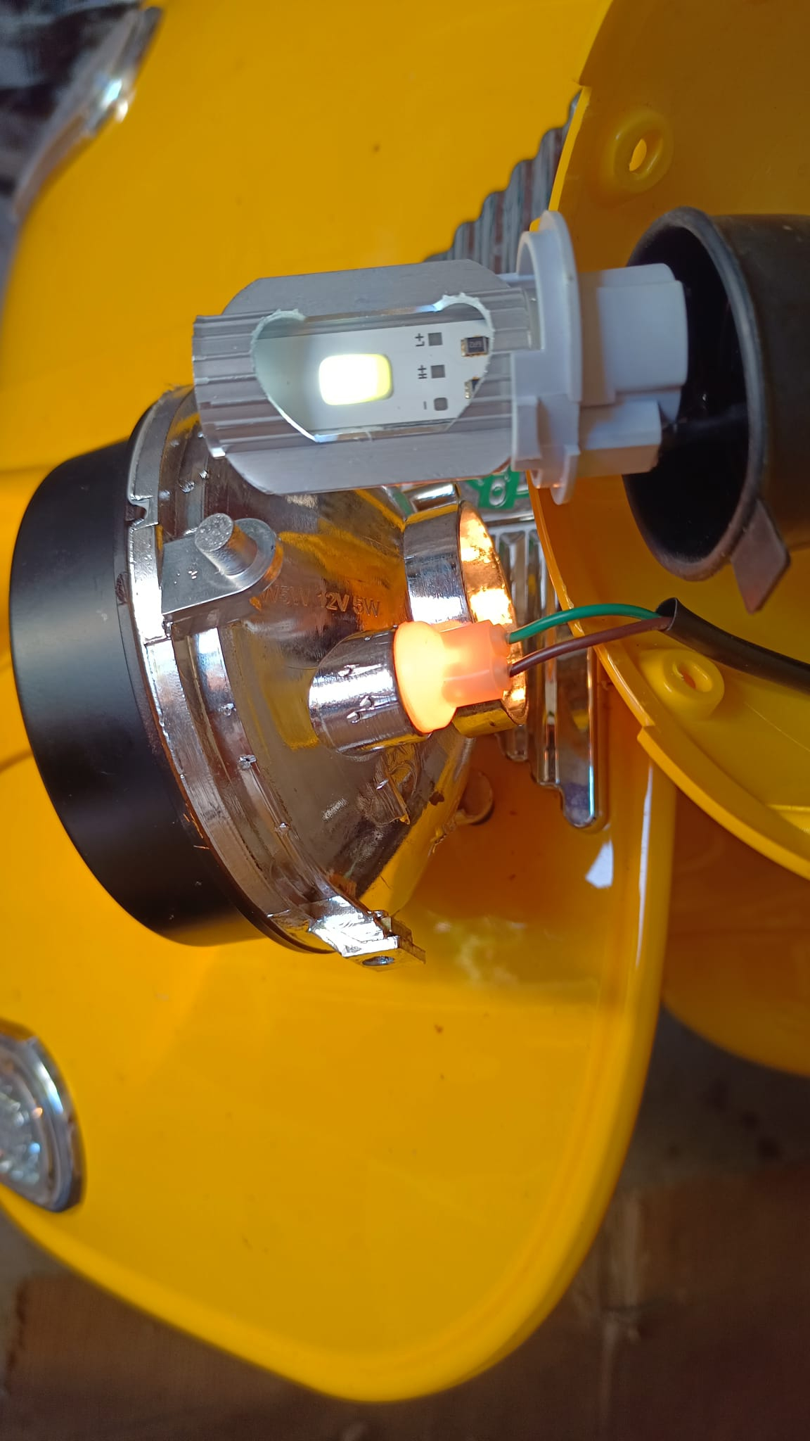 Scheinwerferspiegel aus der Verankerung lösen, dazu das Gehäuse etwas zur Seite drücken und dann das Leuchtmittel wechseln.