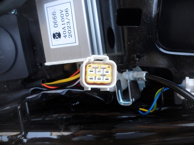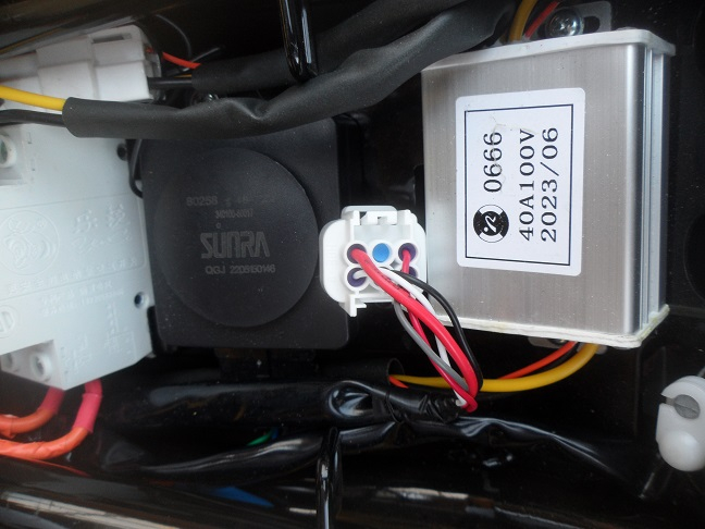 An dem 5 poligen Stecker unter der Sitzbank den ich für die Diagnoseschnittstelle gehalten habe, konnte ich neben 12 V und Masse auf der grauen Ader 2,41 V DC und auf der weißen 2,42 V DC messen was möglicherweise ein Bus Low und Bus Hi sein könnte. Das würde auch zu zwei in den gleichen Farben auf den Controllern aufgelegten Kabeln passen. Ich hätte das auch durchmessen können aber dazu hätte ich erst Verkleidungen abschrauben müssen, deshalb hab ich zunächst mal in Fotos gesucht die ich mal gemacht hatte.