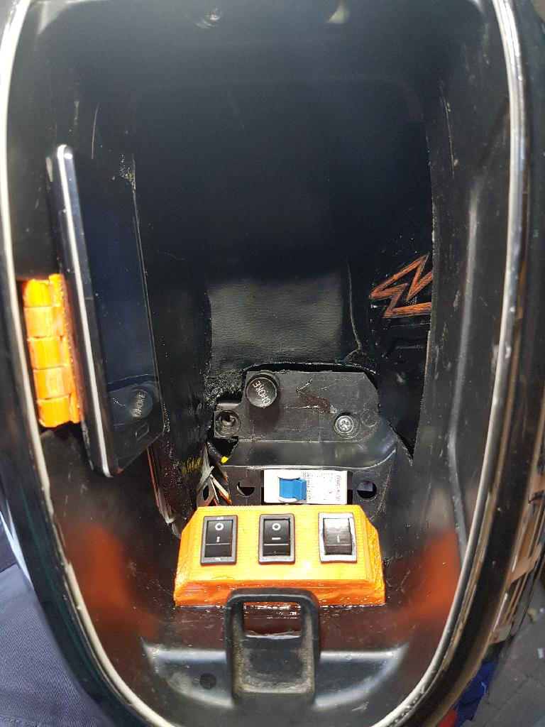 ich experementiere mit der EBS leitung (elektronisches brems system) die ich durch ein dopelten schalter über die hupe betätige (wiso über die hupe ? damit ich die fordere bremse benutzen kann um in die kurve zu schleifen.),mal schauen wie weit ich damit komme.
