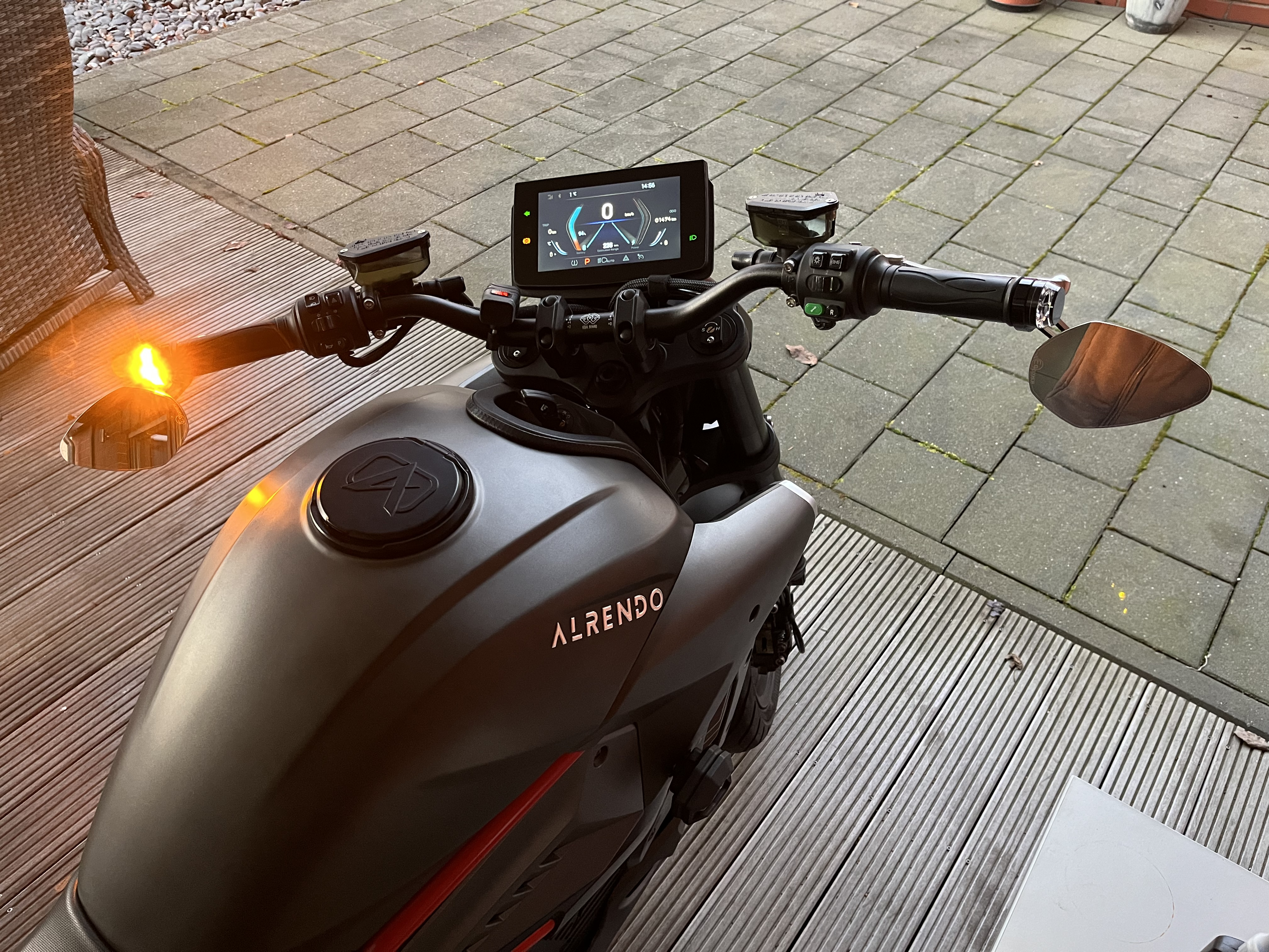 Montag oder Dienstag geht es zum TÜV, der Lenker und die Erhöhung haben zwar eine ABE, aber die ist fahrzeugspezifisch und die Alrendo ist natürlich nicht dabei. Daher müssen die Teile eingetragen werden. Spiegel und Blinker haben ein E-Zeichen und sind nach ECE zugelassen ohne Eintragung.