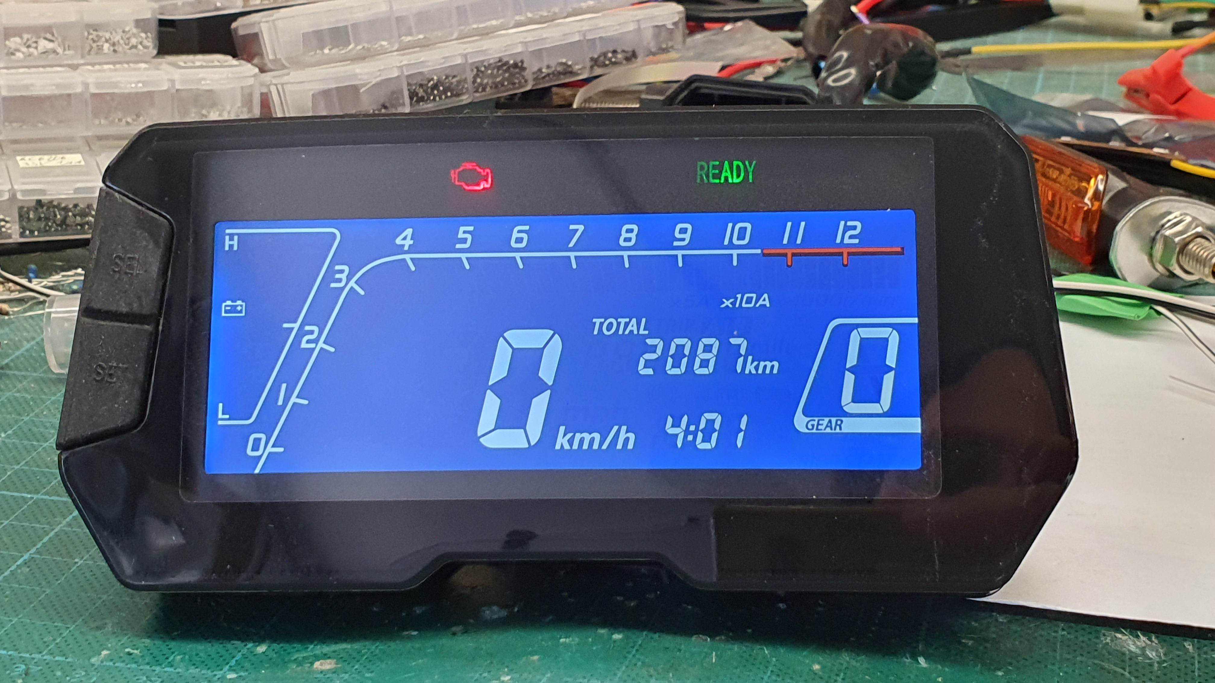 bei der gelegenheit hab ich display noch dimmbar gemacht, die uhr auf batterie umgerüstet und die unmöglichen taster bedienbar gemacht. blinkerkontrolleuchten hab ich ebenso etwas aufgehellt