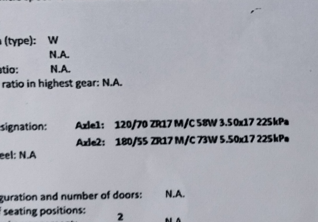 -ich habe bei meinem Moped die "besseren" Reifen bestellt (VA: 120/70 17 58W, statt 110/70 17 54P) - es ist auch nur die eine eingetragen