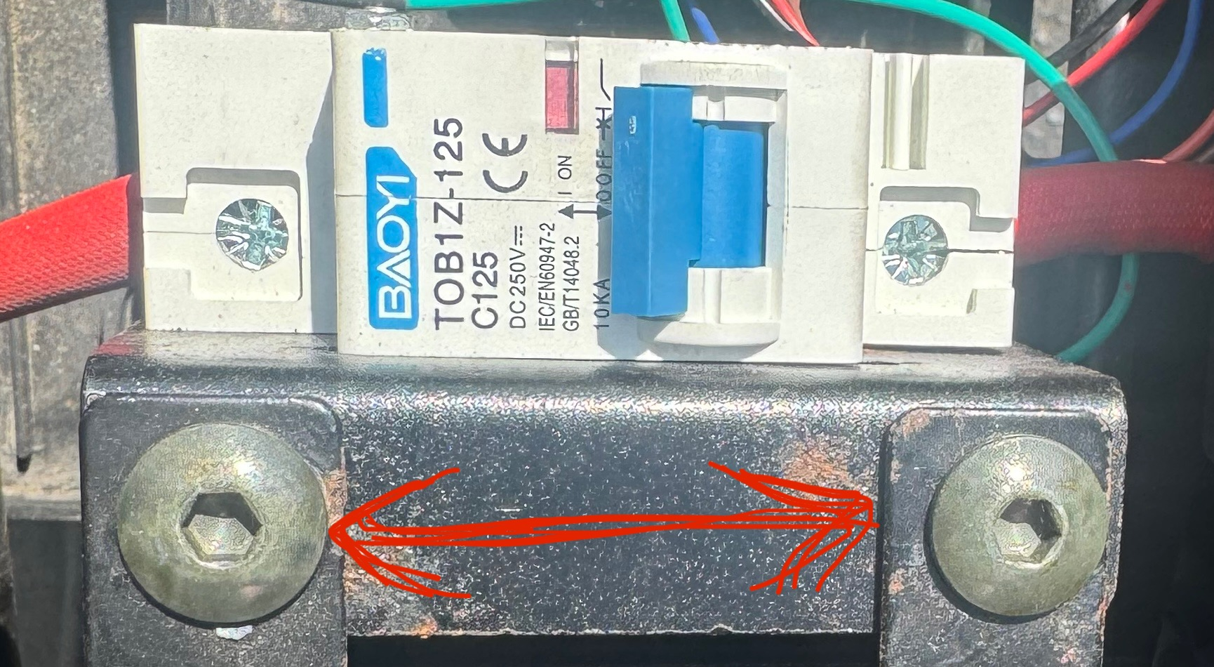 An die Kabel, die zum Hauptschalter führen, habe ich kurz vor dem Hauptschalter vorsorglich bereits Kabelbinder dran gemacht, so dass man im Falle eines Falles die Verschraubung (vom abgerauchten Schalter) einfach lösen und die Kabel nach oben ziehen kann.