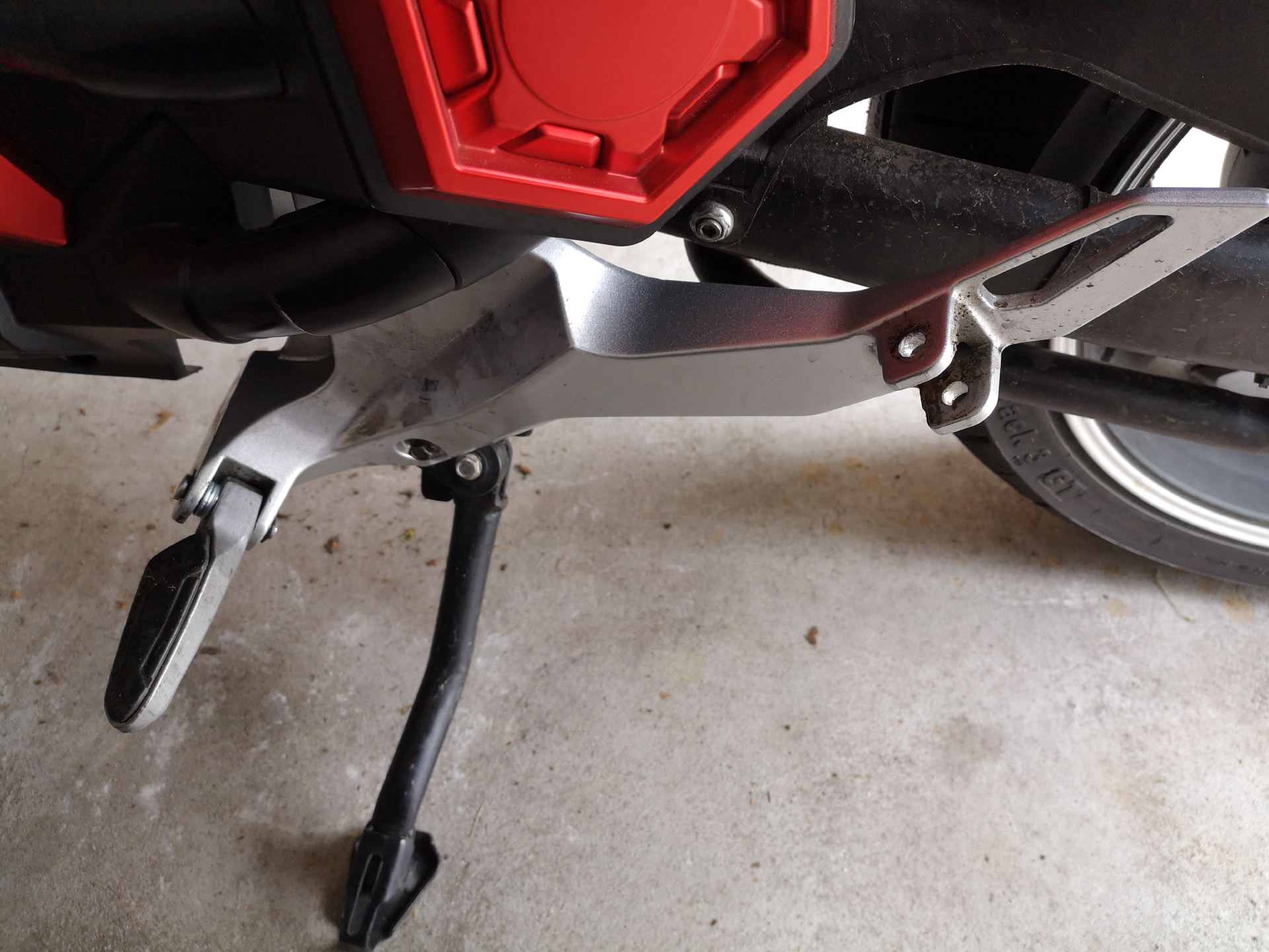 Konnte die Fußraste notdürftig durch das Versetzen der hinteren (Sozius-) Fußraste nach vorne reparieren.