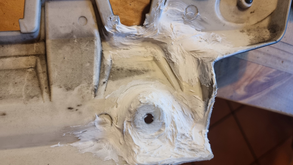 Die Verkleidungsteile sind aus einem spröden (billigen?) Kunststoff. Vor allem die Schraublaschen sind massiv bruchgefährdet.