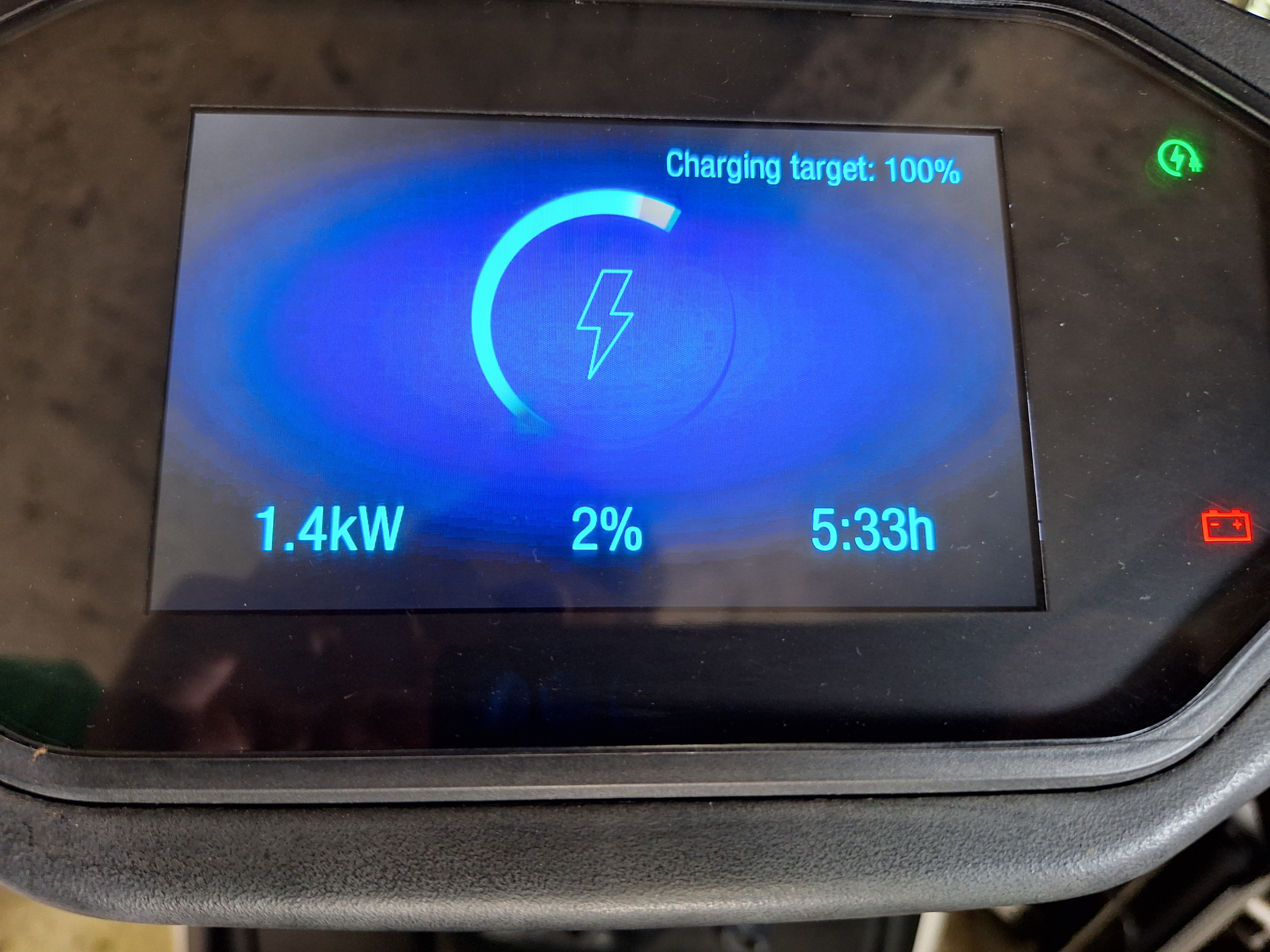 Er hatte ein kleines Gerät (original Ray, vermutlich Diagnosegerät) mit dabei. Vorne unter der Abdeckung (vorher abschrauben) an diesem roten Stecker (zu sehen auf den Fotos vom spanischen Forum) kurz angesteckt, hat meine Ray sofort aufgeweckt. Ladestand 0%, dann sofort an die Steckdose zum Laden und siehe da... sie lädt! 😎