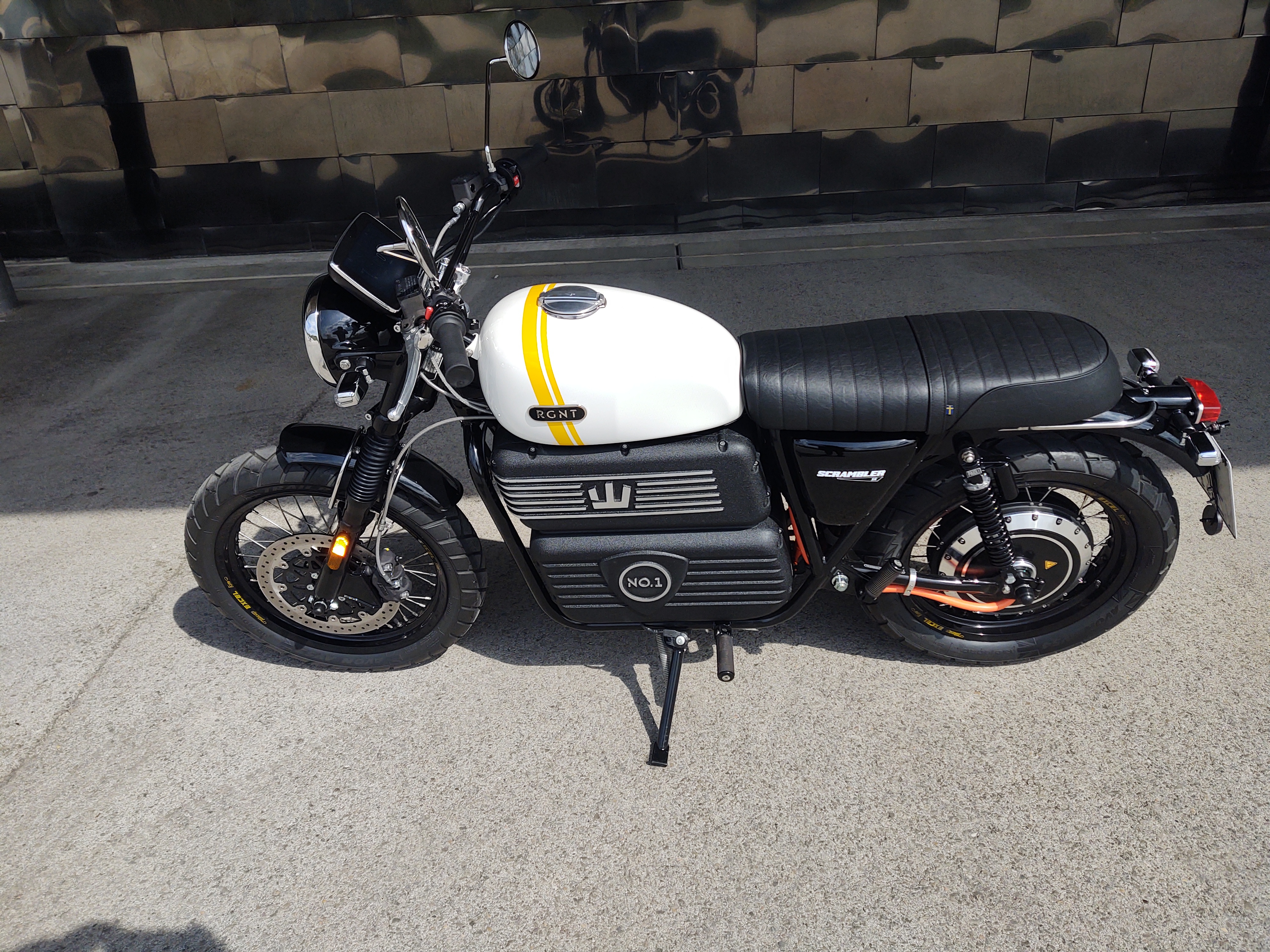 Ich war einer der ersten, die die schöne RGNT bestellt hatten. Leider vergingen sehr viele Monate, und ich wurde immer wieder vertröstet, aber die schöne kam nicht...Daher wurde es eine Zero fxe. Diese war etwas teurer, aber gleich zu gaben...als ich wegen der ersten Inspektion beim Händler war, traute ich meine Augen nicht, er hatte zwei wunderschöne RGNTs im laden, da musste ich nicht lange überlegen...es wurde die Classic 1.6 in schwarz, mit der ich sehr glücklich war. Die einzigen Probleme die ich hatte, waren ölverlust an der Gabel und das Ladegerät, das nur 99% lud. Das ganze wurde aber sehr schnell und unkompliziert behoben...was mich als einziges gestört hat, war das externe Ladegerät und die manchmal etwas zu knappe Reichweite...Die Scrambler der zweiten Generation mit Typ 2 Lademöglichkeit und größeren Akku ist es jetzt geworden...