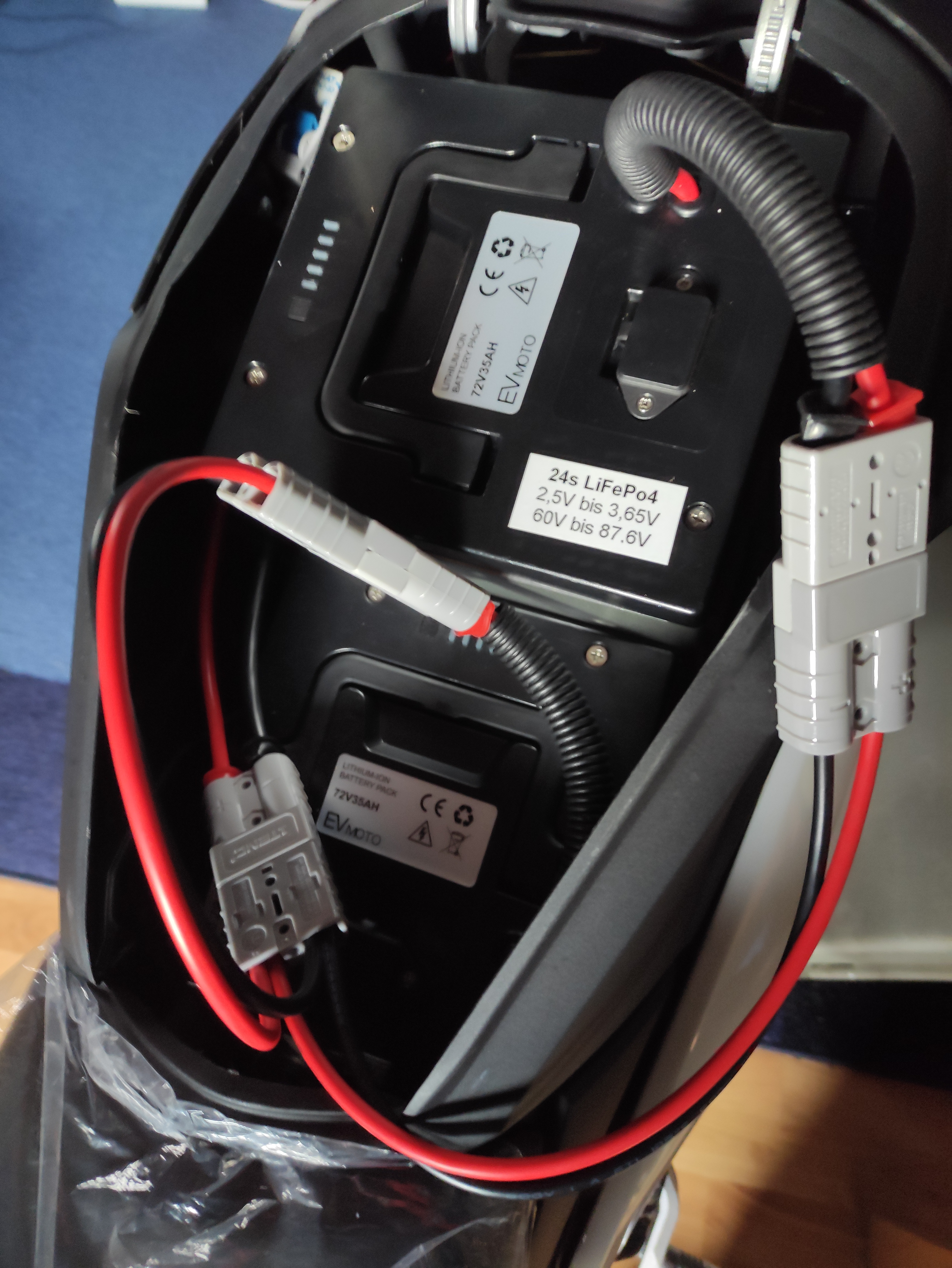 wenn ich das auf den Fotos richtig sehe, gibt es PRO Akku einen Sicherungsschalter. Ein Zusammenkoppeln der Akku ist damit UNZULÄSSIG