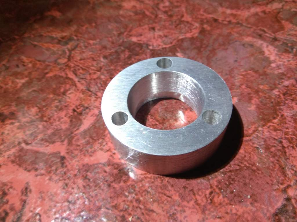 so, der erste schritt für die zweite bremscheibe vorne ist getan, der adapter für die bremsscheibe ist fertig