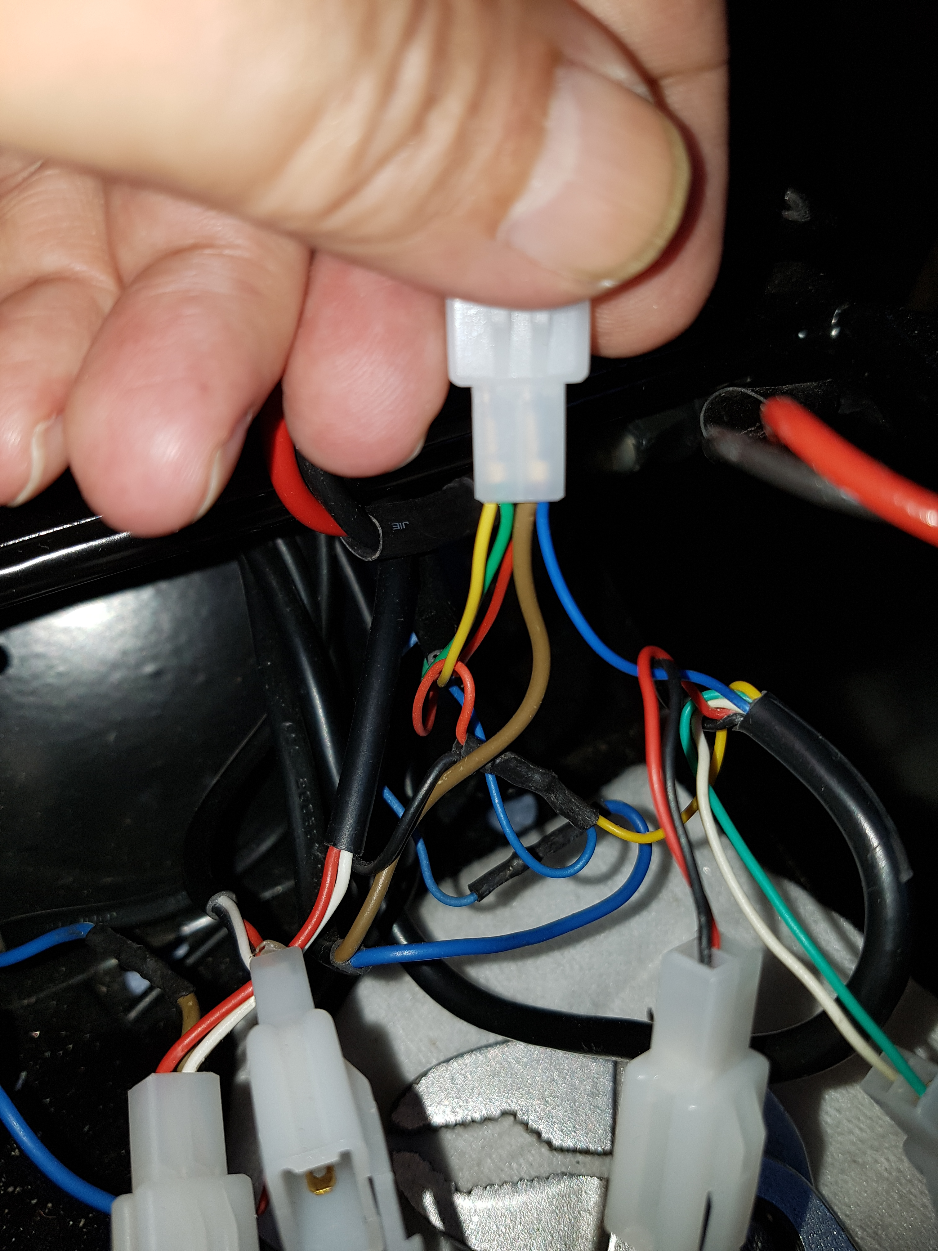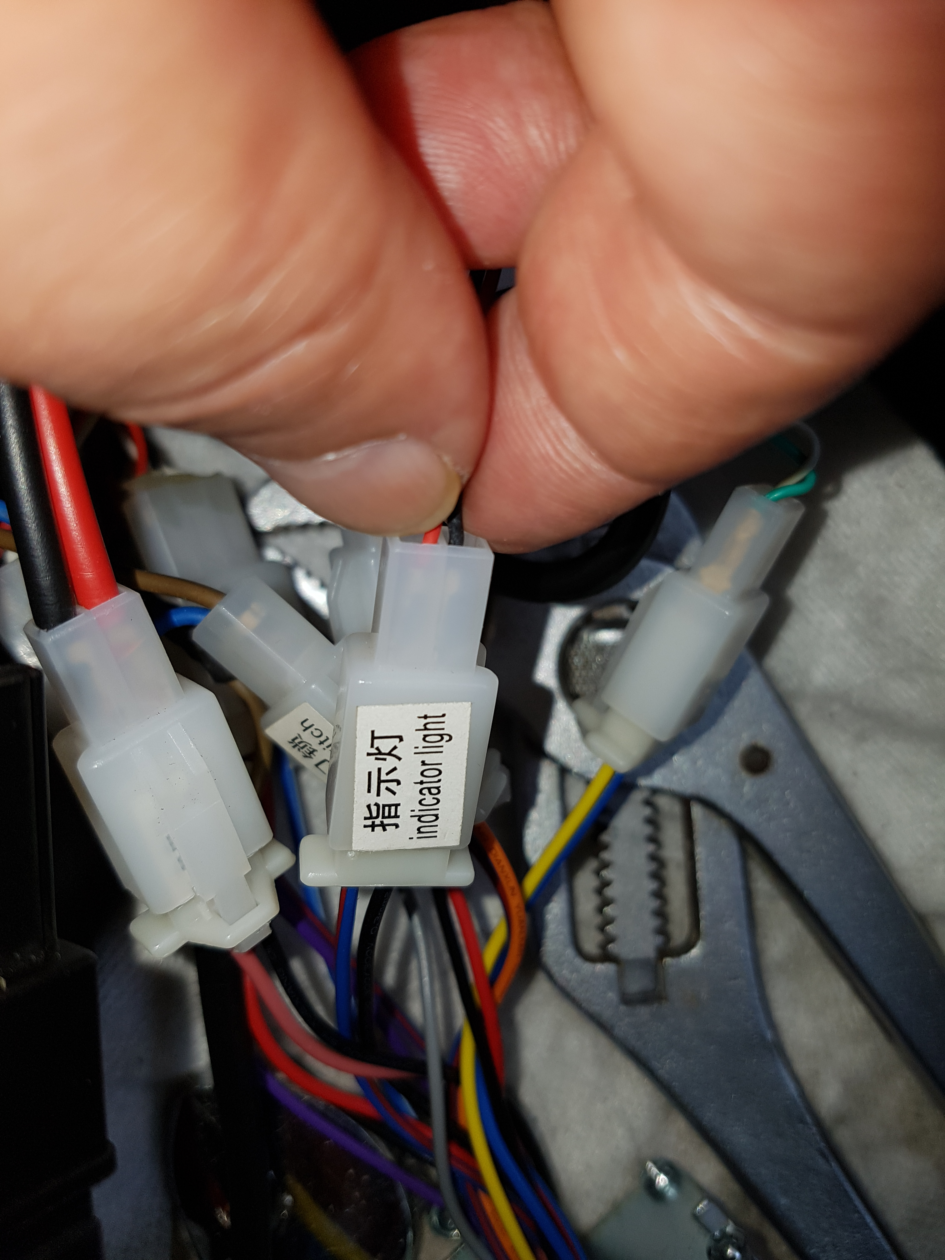 Nein Blinker hat er nicht. Den Kabelbaum werde ich noch markieren, erst Morgen mal wieder zusammen bauen. Heute macht das keinen Sinn. Ich muss in die beiden anderen Roller noch einen GPRS TRACKER einsetzen.