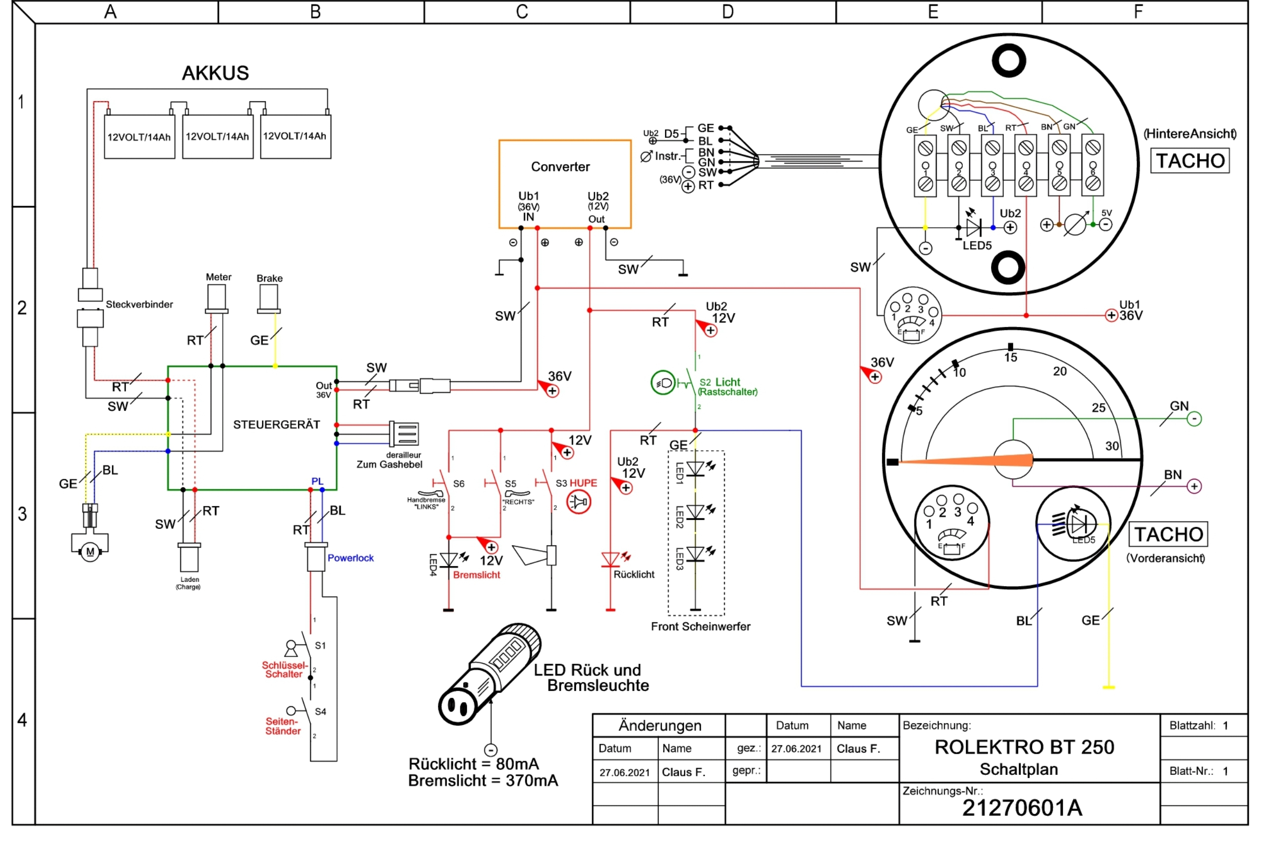 Meine BT-250 Rolektro will nichtmehr. Ich habe alle meine Stecker ausgesteckt und die Beschriftung ist leider abgegangen. Leider finde ich nirgends wo was hingehört. Hat jemand bitte ein Bilder vom Controller und den Stecker? Was wohin kommt?