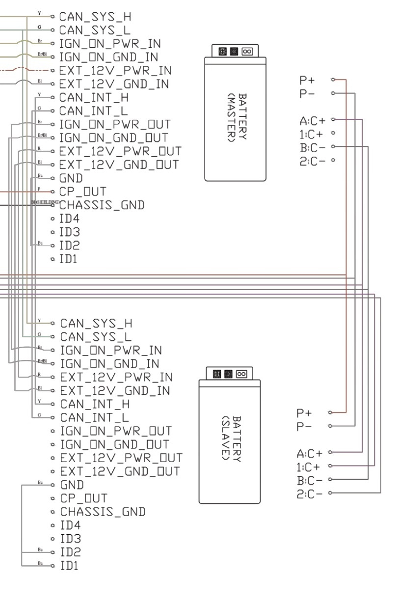 Die Kabel A:C+ und B:C- führen direkt zu beiden Batterien.