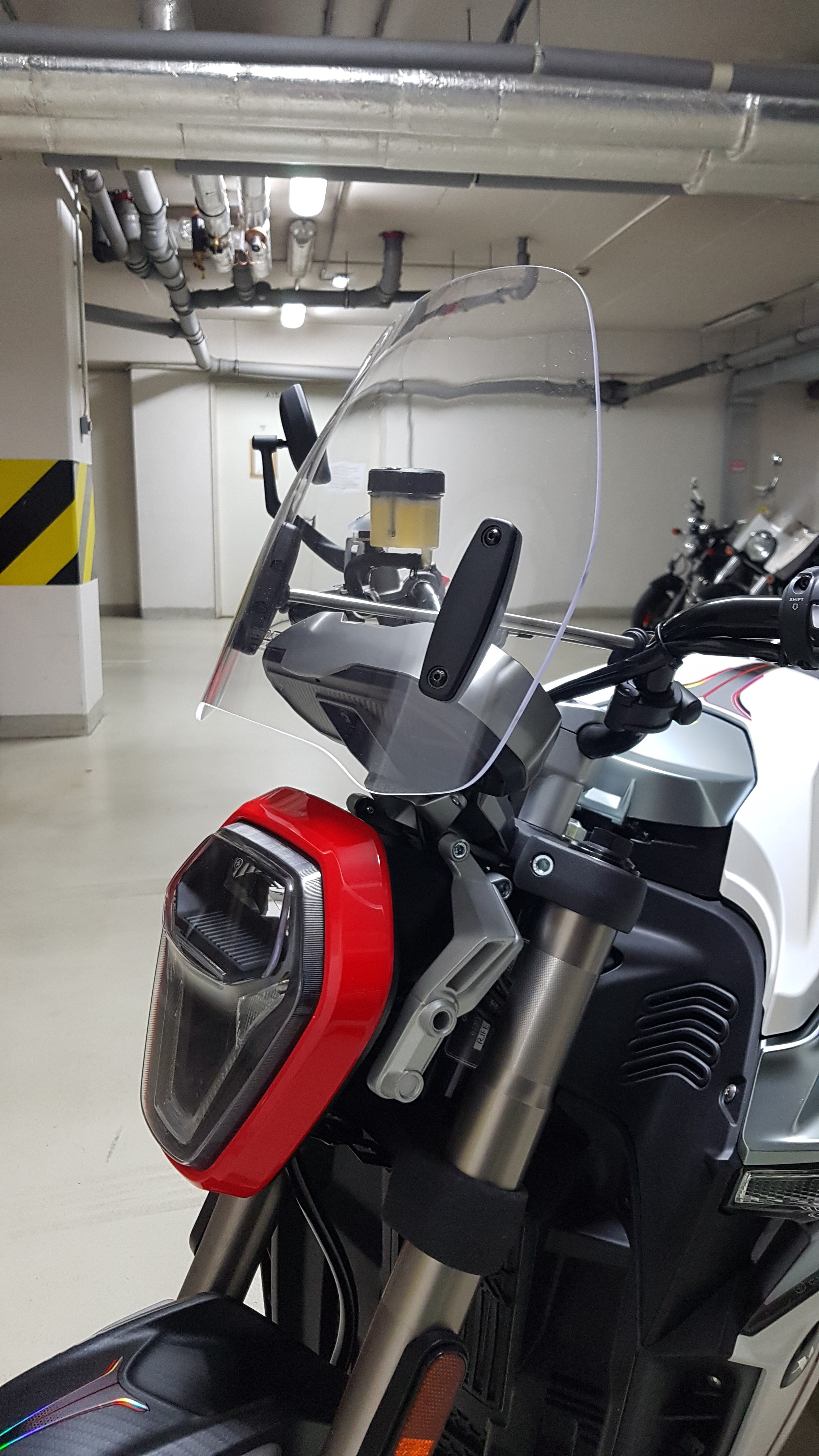 Mittlerweile habe ich mein Ovaobike mit dem universellen MRA Roadshield Windschutz ausgestattet. Ich denke, es passt gut und ich habe getestet, dass es bei höheren Geschwindigkeiten effektiv ist, wenn ich mich auf den Tank lege:)