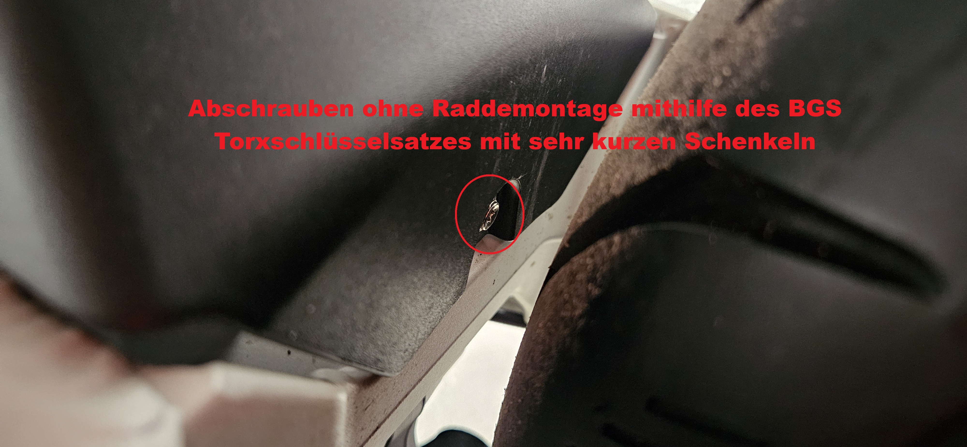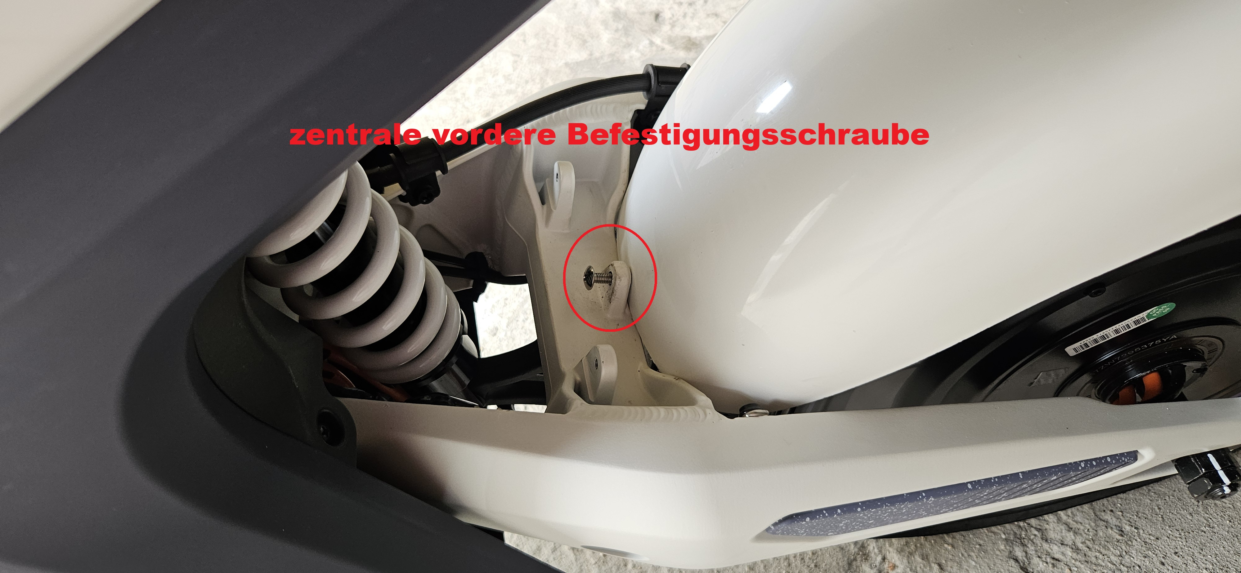 Der schwarze kleine Spritzschutz für das Federbein auf der Hinterradschwinge muß abgeschraubt werden.