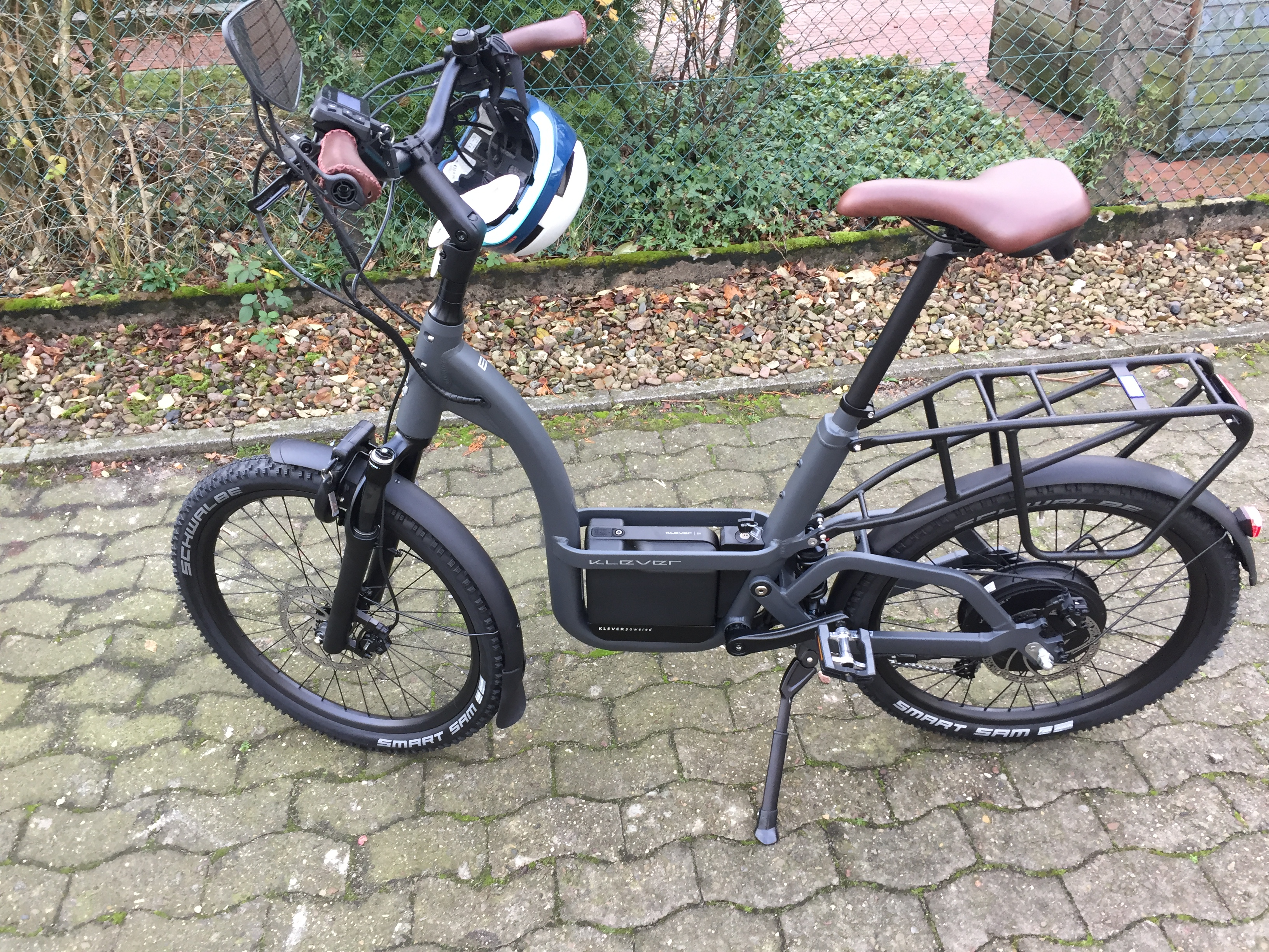 Klever B - Comfort. 350 W Biactron. 43 Nm, gedrosselt für D auf 250 W. 25 kmh Modell. 570 Wh Akku. Die serienmäßigen Schwalbe Big Ben getauscht gegen Smart Sam mit groberen Stollen