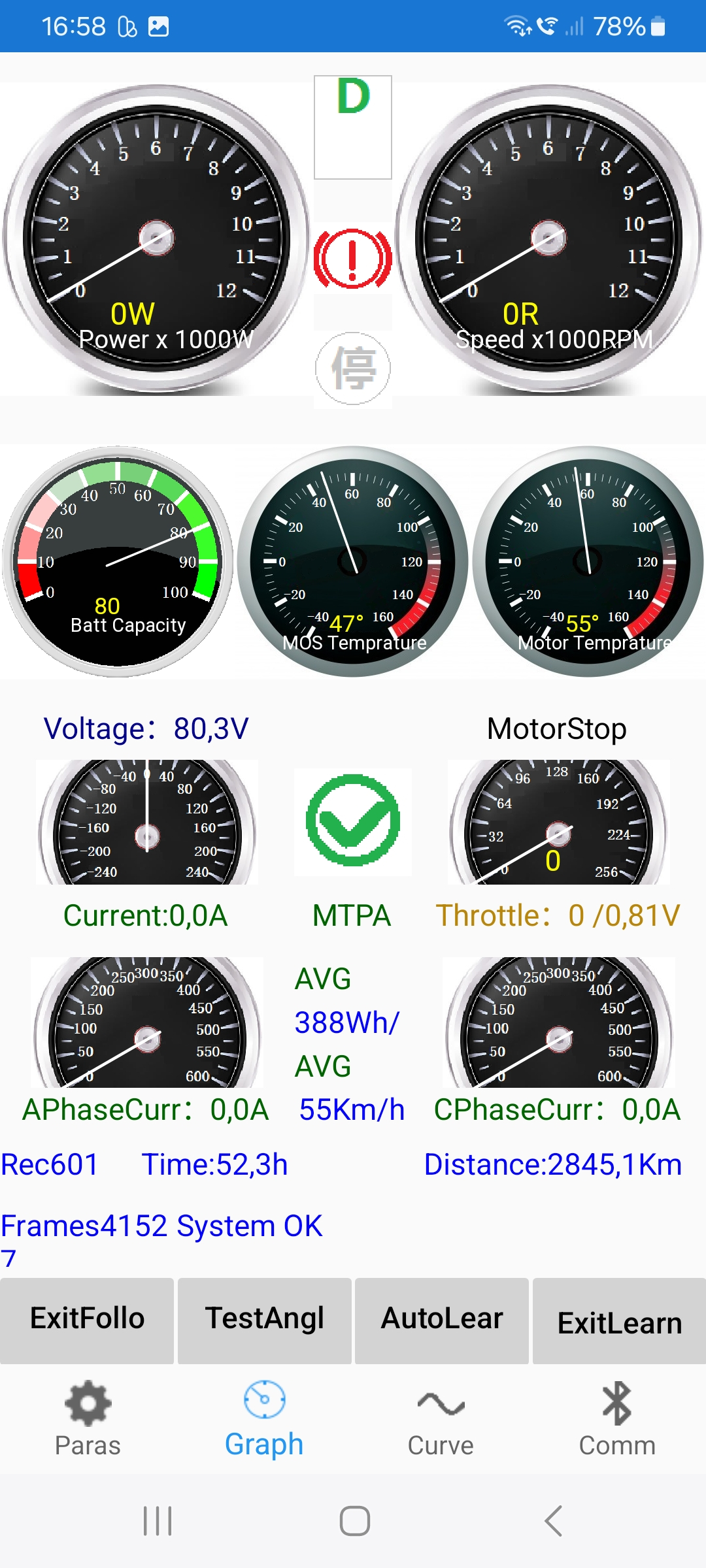 Der Cobtroller hat beim alten Motor rated rpm1660 ermittelt ubd beim neuen 1008. Was auch immer das bedeutet.