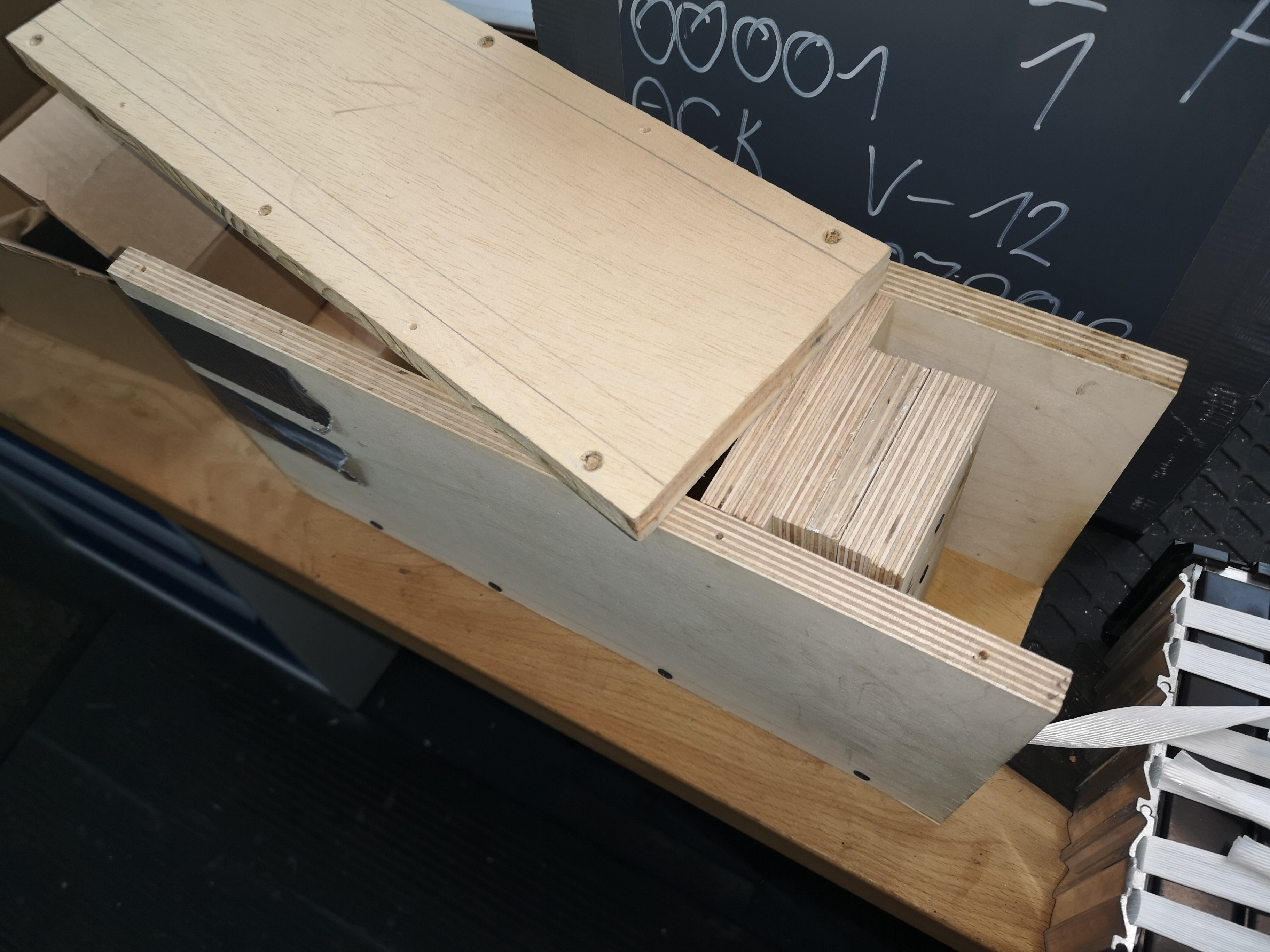 Das ist leichter gesagt als getan: Wenn man die Stahlbänder der entsprechenden 10er-Reihe löst, dehnen sich die Zellen sofort bauchig aus. Sie müssen mit hohem Druck wieder auf das Einbaumaß gebracht werden. Das ist mir erst gelungen, nachdem ich ein tunnelförmiges Gehäuse gebaut habe. Da werden die Zellen und die Abstandhalter (schwarze gabelförmige Kunstoffteile) eingelegt. Deckel drauf und mittels eines Stempels und Schraubzwingen zusammen pressen. Zusätzlich hatte ich Spanngurte mit eingelegt, die das Paket in Form halten. Anschließend Deckel ab und das Paket nach oben entnehmen. Jetzt konnte ich den Zustand mit dem Umreifungsgerät sichern. Leider musste ich die Metallschnallen seitlich anbringen. Das System ist nur mäßig geeignet. Aber am Ende passte alles einschließlich Isoliermaterial in das vorhandene Gehäuse.
