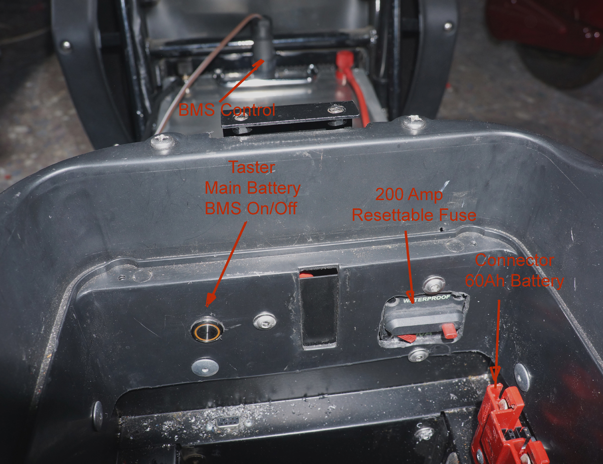 60Ah Akku zum Fahren : Schalter aus und 60 Ah Akku richtig einsetzen.