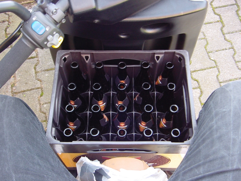 @ Haro (und Peter): 20er 0,5l Karamalz-Kiste passt, und man kann sogar noch die Füße aufs Trittbrett stellen und mit den Knien das Ding balancieren :D