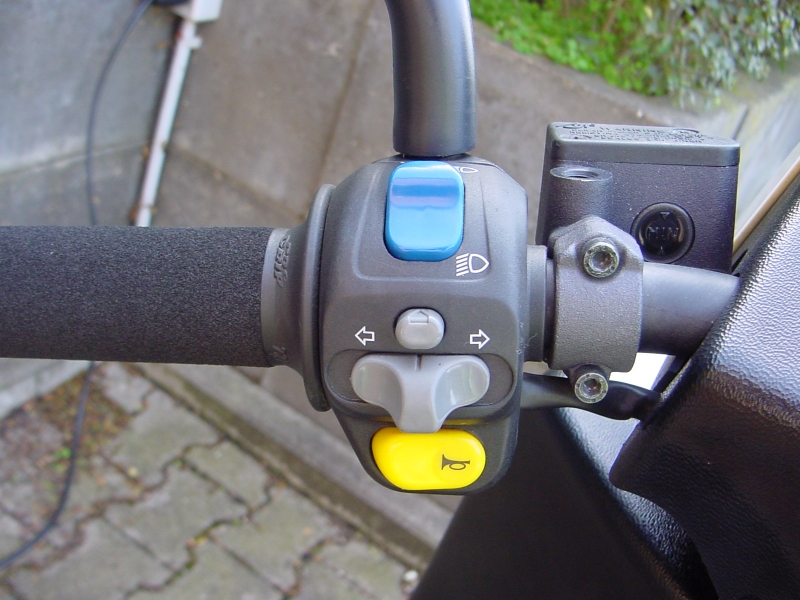 Überhaupt ist der vRone ganz anders gestrickt als unsere heißgeliebten E-Zweiräder aus dem Reich der Mitte bzw. dessen Abtrünnlingen auf der Insel Formosa: Als Hauptschalter und / oder Sicherung dient ein richtiger Not-Aus Knopf, dessen roter Kopf ein wenig aus einem Fenster im Helmfach lugt, und der Controller wird bei Drehgriffspannung kurz vor Leerlauf per Schütz von der Batterie getrennt, mit einem hörbaren Klick - jedes Mal!
