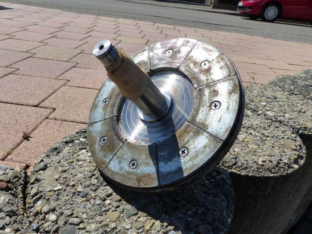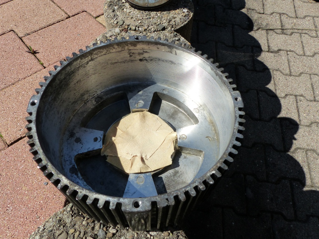 Aber die Elektrobleche sind echt in einem erbärmlichen Zustand. Werde erst noch versuchen die stark abstehenden äußeren Decklagen wieder etwas näher an den Rest heranzuziehen, danach nochmals mit der Edelstahlbürste zu entrosten, und schlussendlich kommen einige Lagen Klarlack drauf. Gleiches für den Rotor und seine Monstermagnete.