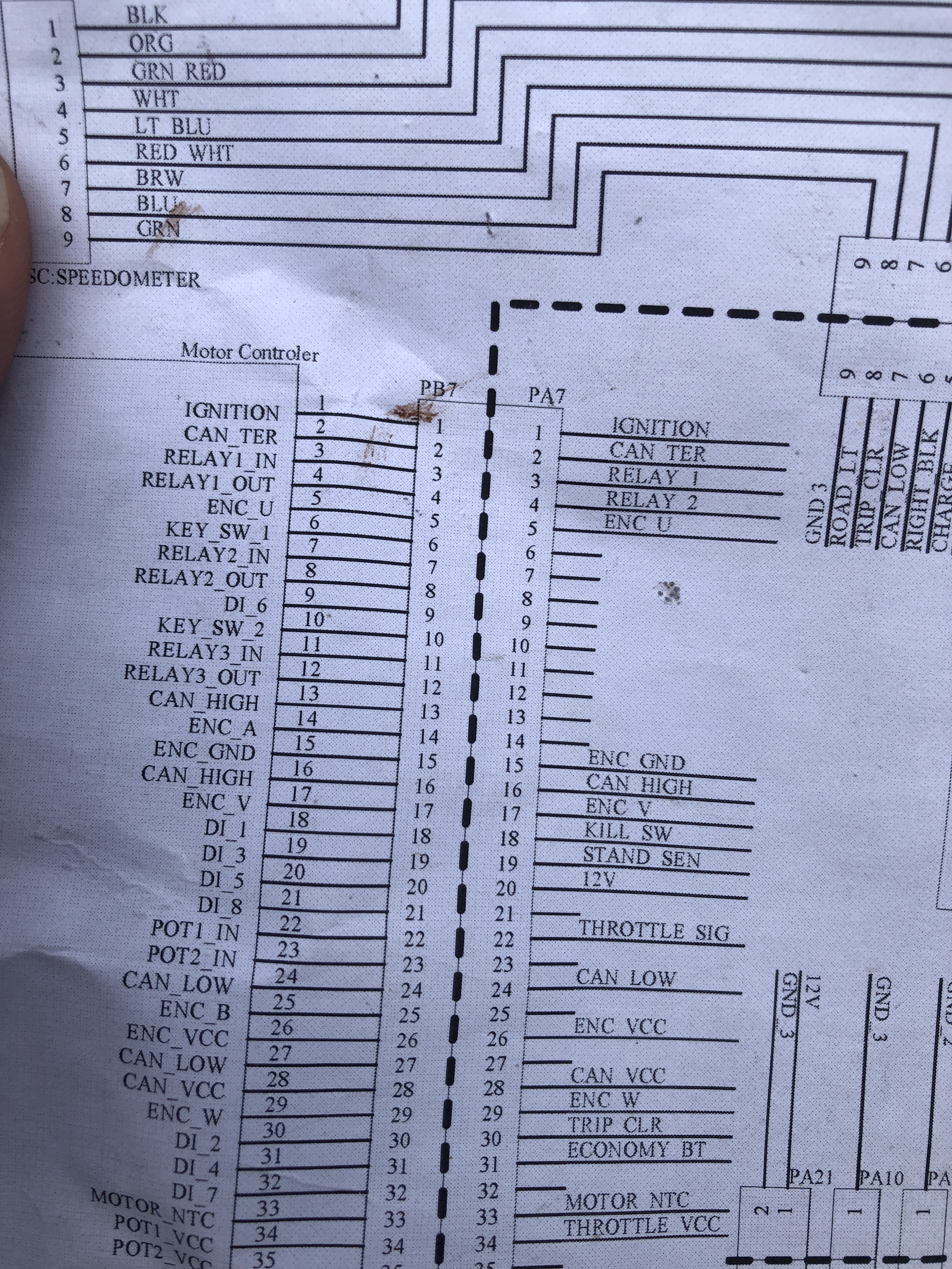 Eine B6 Brücke hat 6 MosFets (Schalter). Es gibt 3 pos. Halbwellen (Top) und 3 neg. Halbwellen (Bottom) bei Drehstrom. Hilft aber wohl nicht weiter. Läuft der Roller eigentlich noch?
