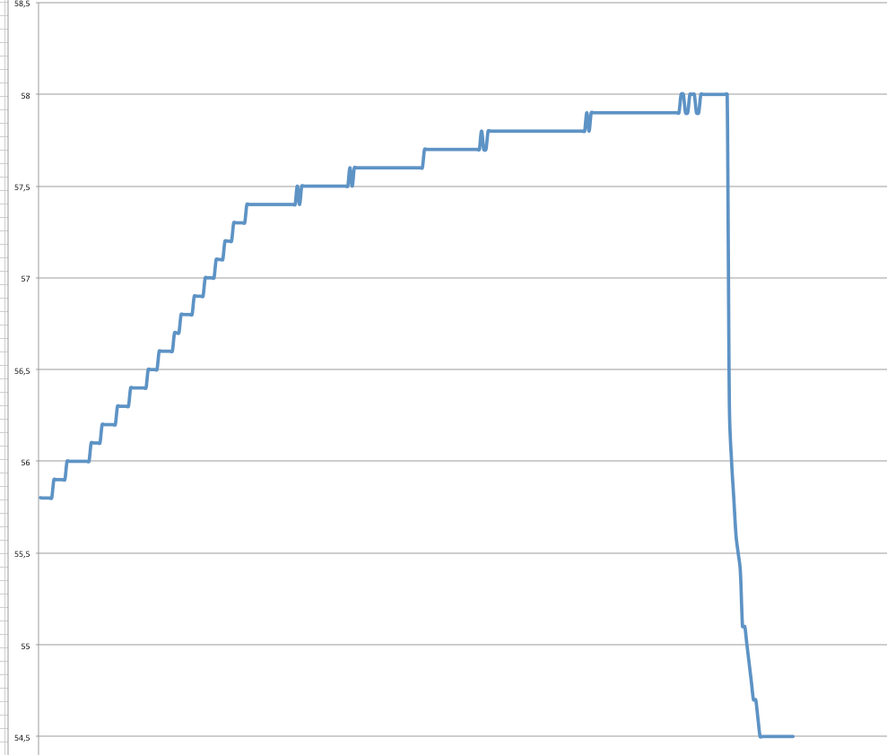 Habe mir abschließend beim letzten Controller-Tausch mal die Ladeendspannung nach kurzer Spritztour angesehen und bin beruhigt, dass meine Akkus anscheinend nicht stundenlang gekocht werden. Nach genau 58V geht es auf ca. 54 zurück und lädt dort mit kleinem Strom noch etwas herum. :)