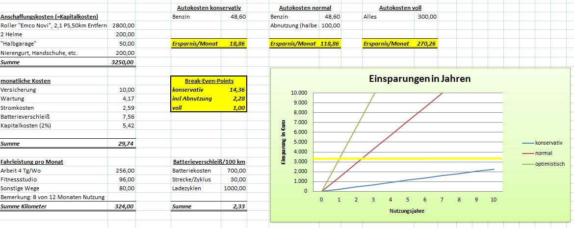 ich schwanke zwischen den oben genannten Rollern und habe mich an der Berechnung des Sparpotentials versucht. Die Threads zum Thema "Novi" habe ich gelesen und im Rahmen meiner begrenzten Möglichkeiten versucht zu verstehen.