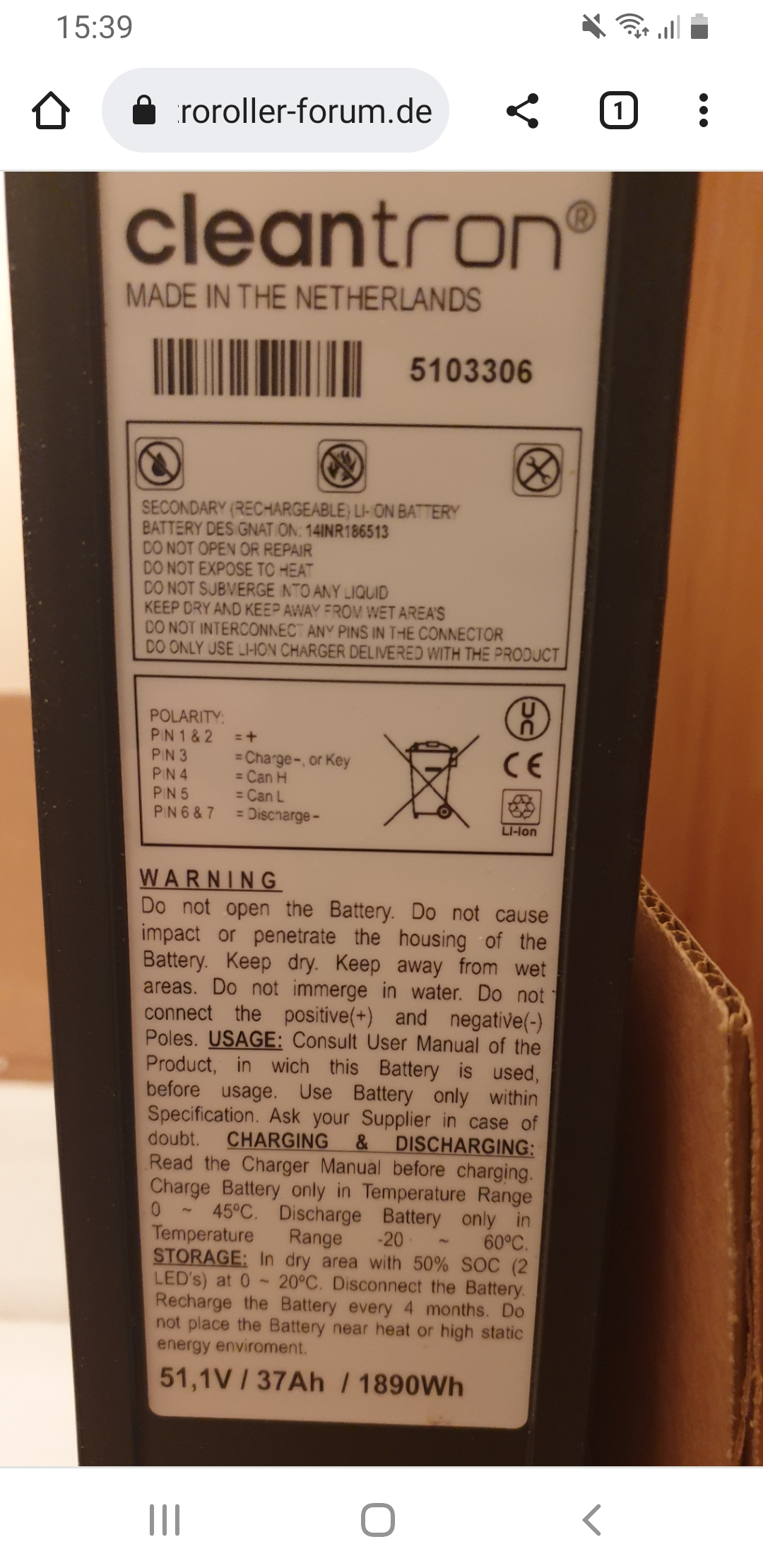 Als dann das BMS nicht mehr funktionierte bei dem alten Akku, leuchtete das Display noch, die Zahlen wurden einmal durchgespielt zu Beginn und dann passierte nichts mehr. Der neue rote Akku, 6 Jahre alt, ist nun direkt von cleantron und nicht von emco. Er