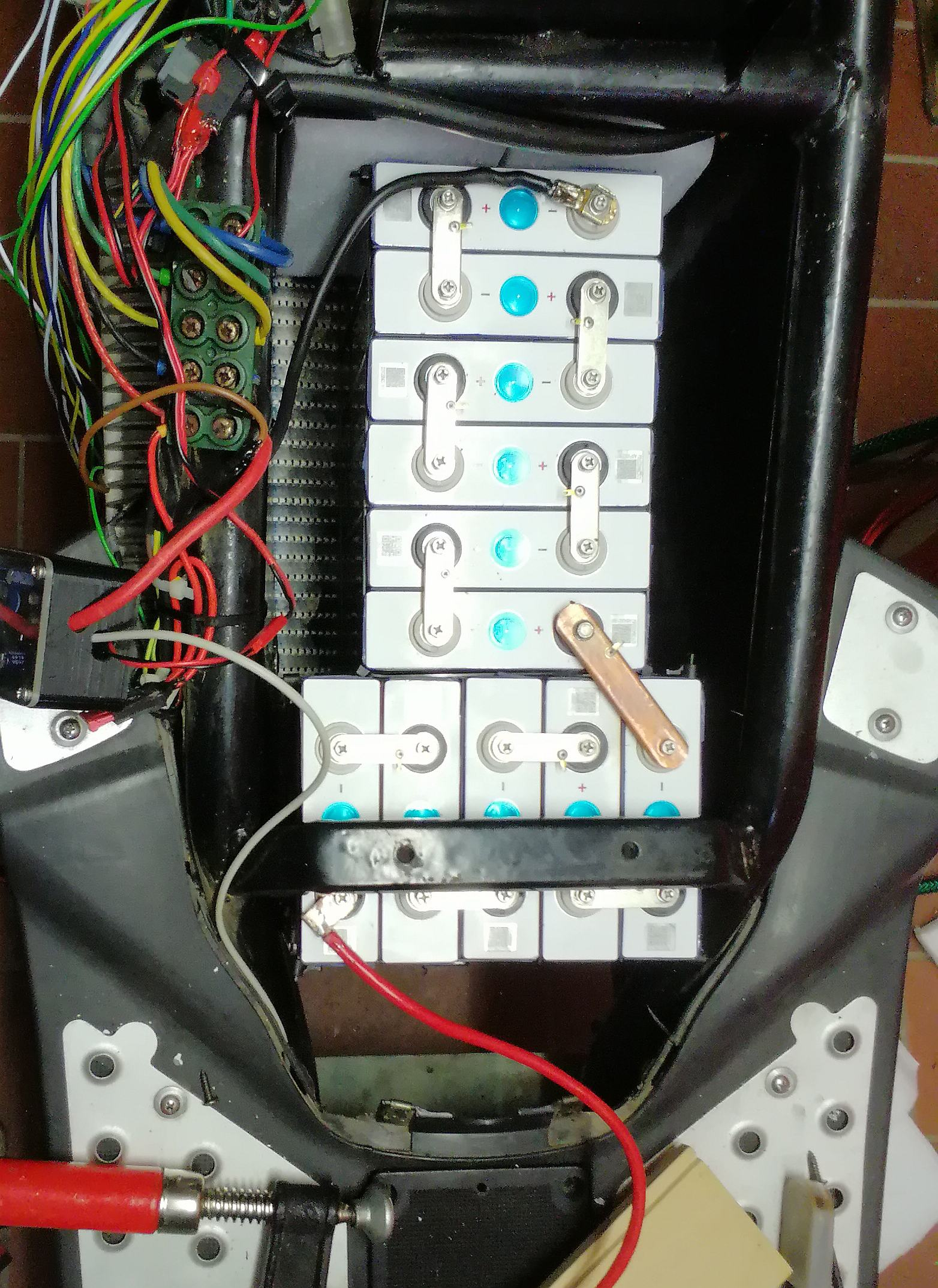 Darüber kommen die restlichen 5 Zellen. Das Fach, hinten, wo der 4. Bleiakku untergebracht war, bleibt frei.