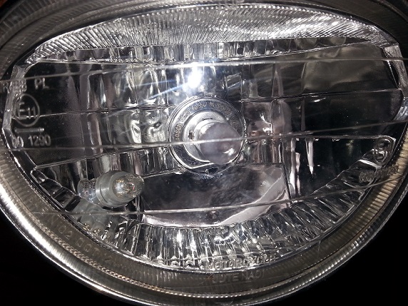-im Frontscheinwerfer ist eine kleine Standlichtlampe(?), die leuchtet ganz schwach, wenn man das Licht einschaltet, die Hauptbirne leuchtet nicht (ist aber nicht durchgebrannt). (Foto 4)