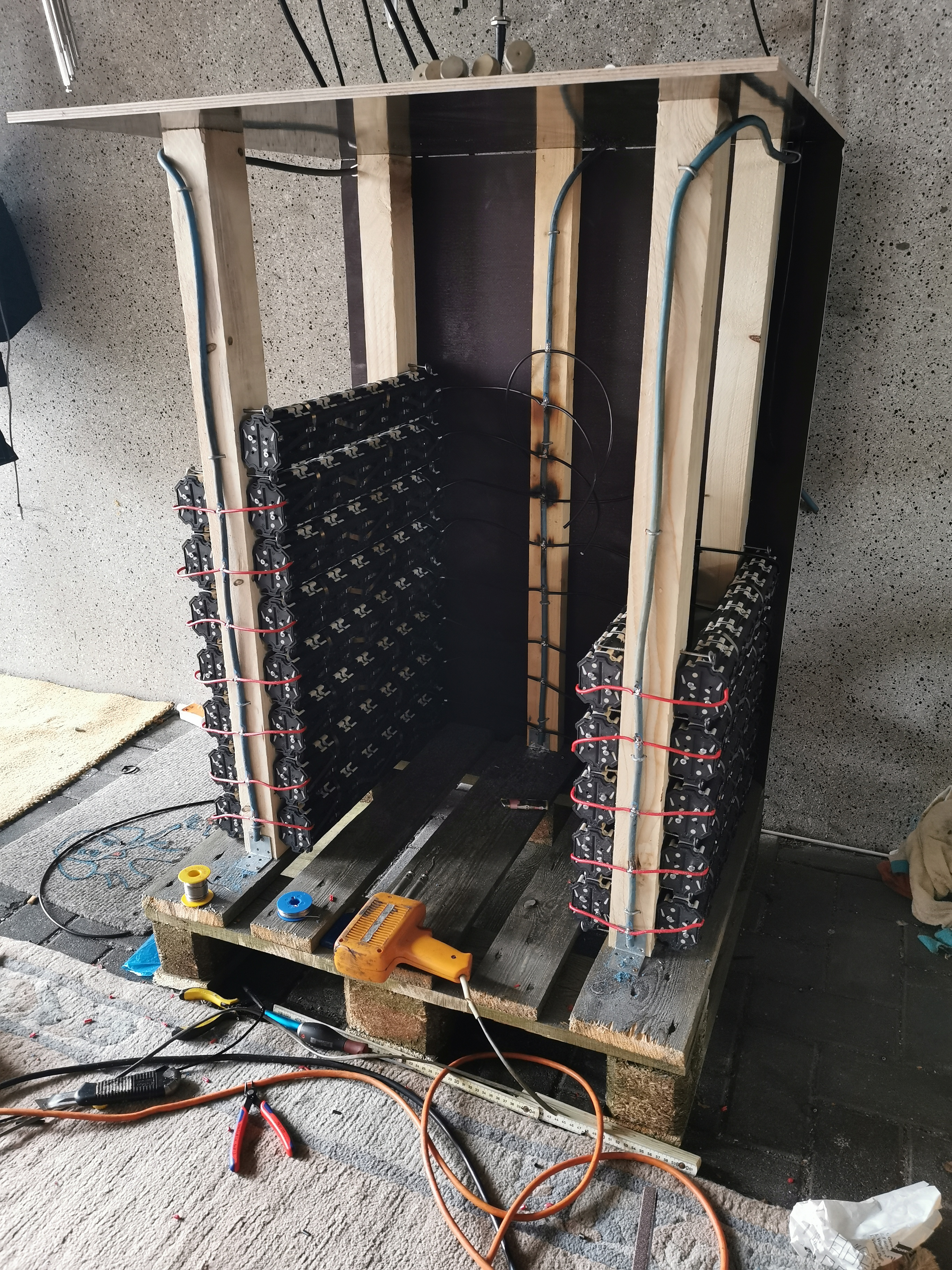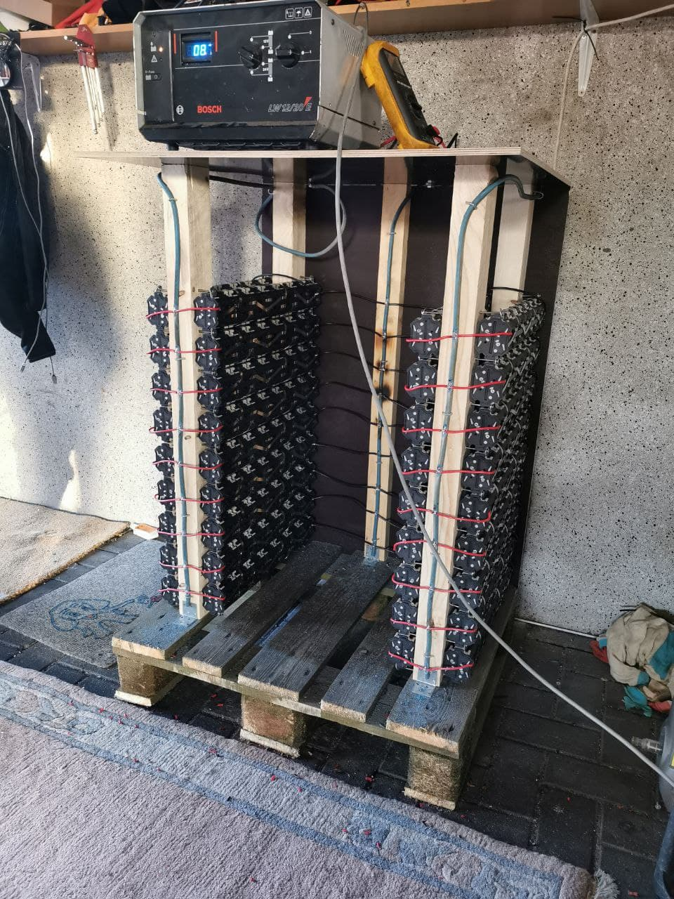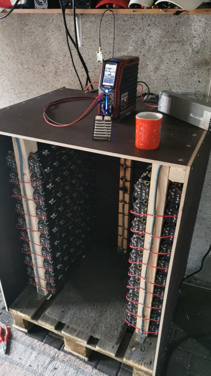 Fertig sind es 36 Akkupacks wo dann einer 1/4 der Leistung oder sogar weniger als im Pedelec abgeben muss wenn ich die Zero mit 3,6kw lade. Theorethische dauerhafte Leistungsabgabe der Zellen ist im Pack zusammen 2880 Ampere
