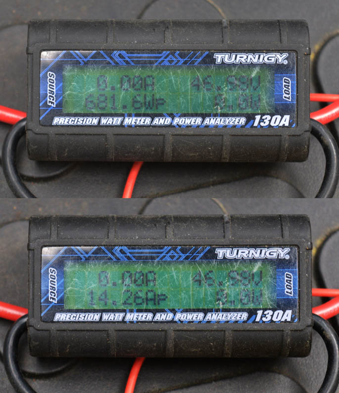 PS: Das Turnigy ist natürlich, Strom betreffend, kein Präz. Instrument.(Auch wenn das drauf steht) Auch mit kurzen Leitungen zum Shunt, könnten es auch 88Ap (p=peak) sein, in etwa stimmt es aber. Der Ecoflash (2000W rating) war auf der Vergleichstrecke mit bis zu 2600Wp /bzw.550Wp Reku dabei, freilich mit Blei und vergleichsweise hohen Einbrüchen.