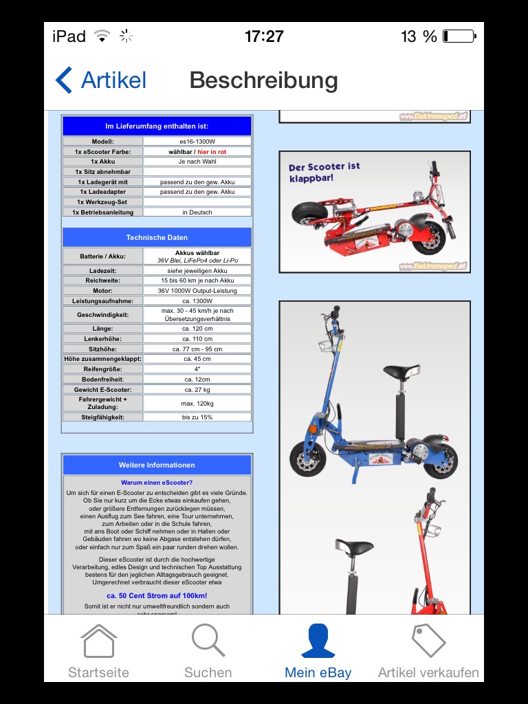 Das hätte ich auch gerne.Weiters sollte er nicht mehr als 500 kosten und die Reichweite, das Wichtigste, sollte min- 35-45 km haben.