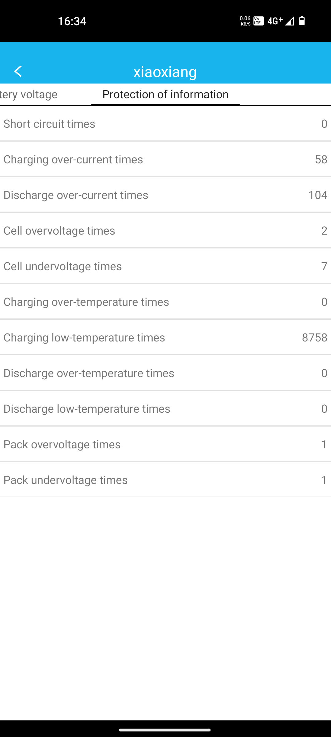 Das zweite BMS, welches ich nacheinem Kurzschluss im kiloamperebereich, einbauen musste, zeigt exakt den gleichen Wert an.