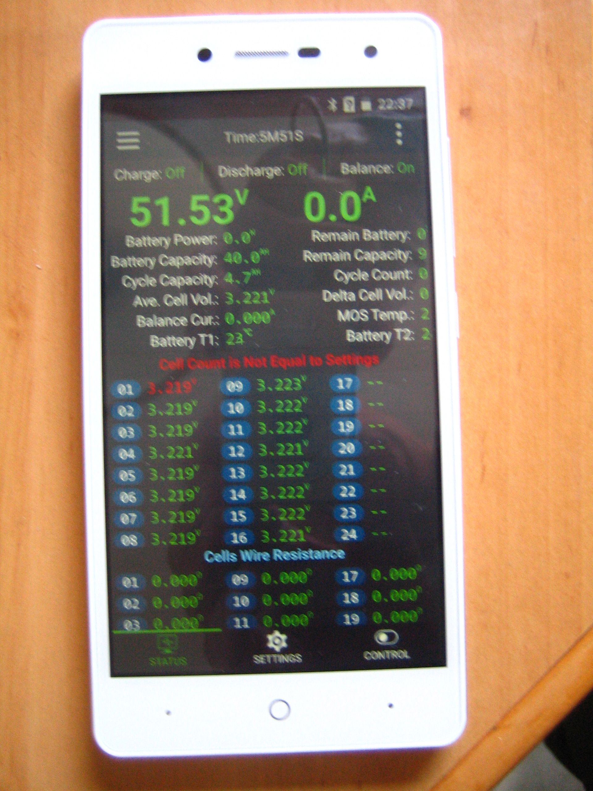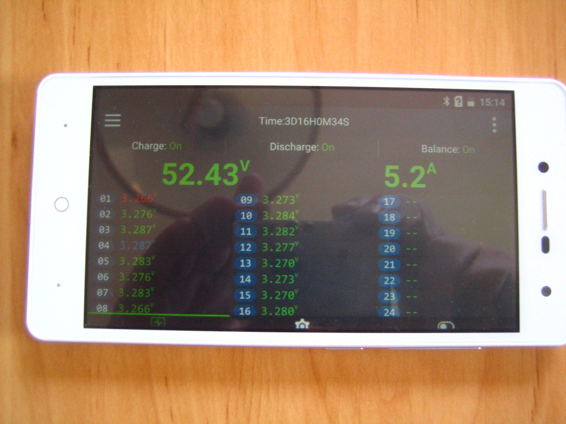 Mein JK-BMS (JK-B2A24S15P) ist nach 5 Wochen letzte Woche bei mir eingetroffen. Heute war einmal Gelegenheit das BMS an einer 16S LiFePo4 Konfiguration zu testen.