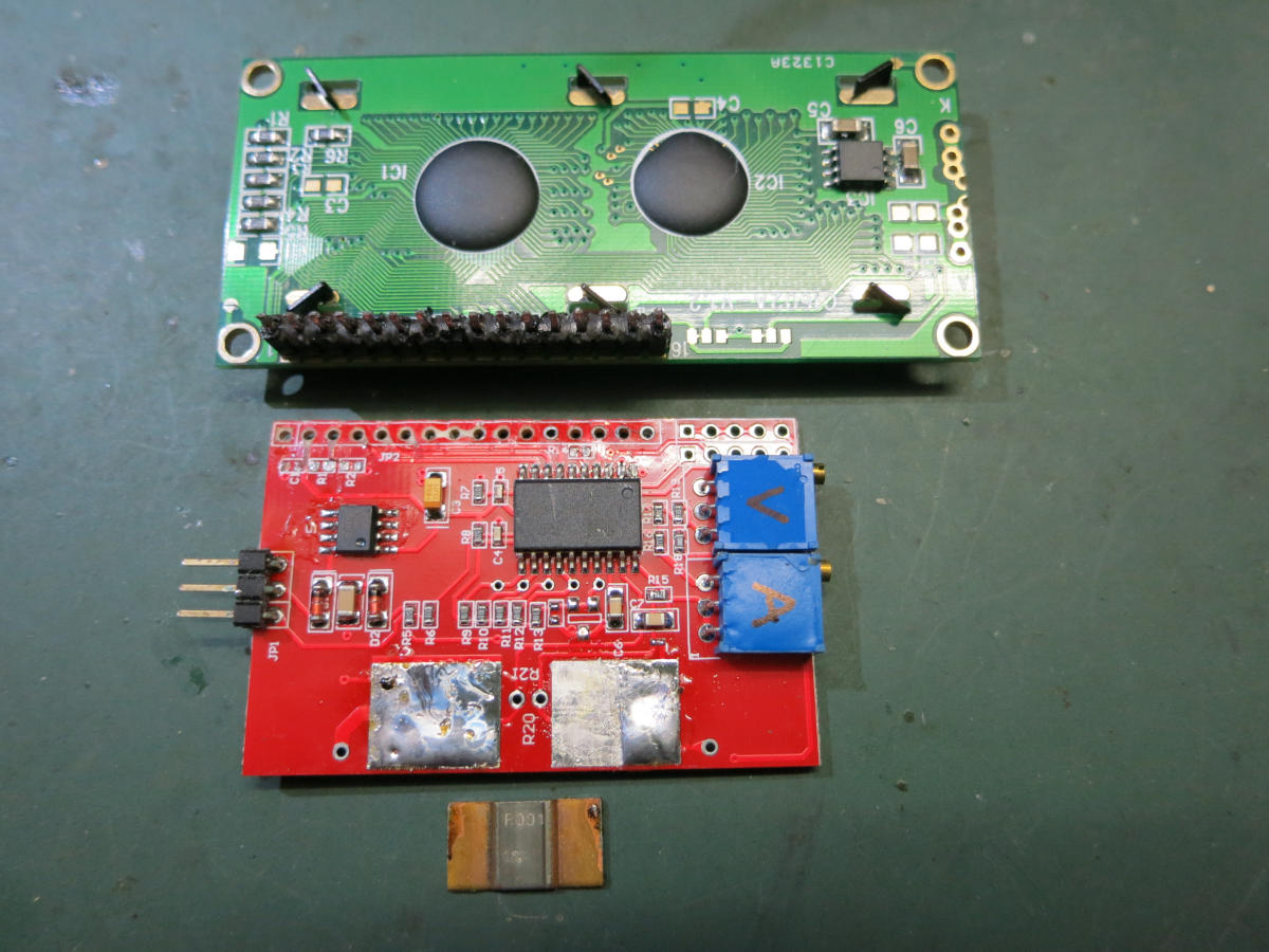 Mit dem Shunt hatte ich aber mehr Erfolg. Da dieser großflächig verlötet ist, habe ich erst auf einer Seite das Lötzinn verflüssigt und eine durchgebrochene Rasierklinge dazwischen geschoben. Dann braucht man nur auf der anderen Seite des Shunt's das Lötzinn erhitzen und schon ist der Widerstand ab.