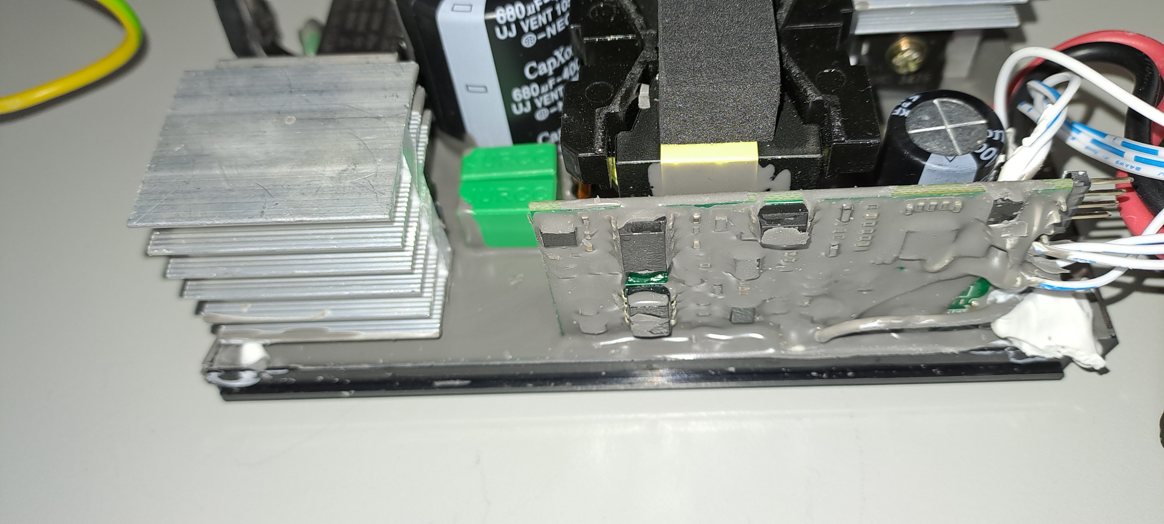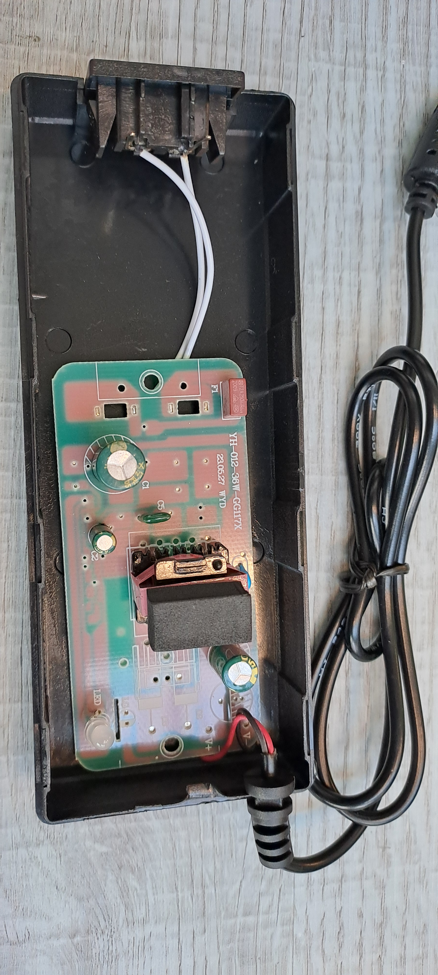 Hier wurde sogar am der Einstecktiefe des Anschlusssteckers gespart. Die 230V Seite ging nur etwa 8mm ins Gehäuse, normal wären 20mm gewesen, aber irgendein findiger Chinese hat auch da noch "Einsparpotential" gefunden und die Einbautiefe der Steckerbuchse reduziert.