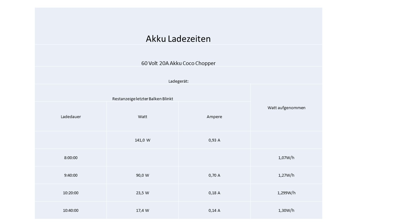 Bei der Angabe des Ladestrom mit 1A habe ich mich auf mein Verbrauchsmesser(Schätzeisen)verlassen.