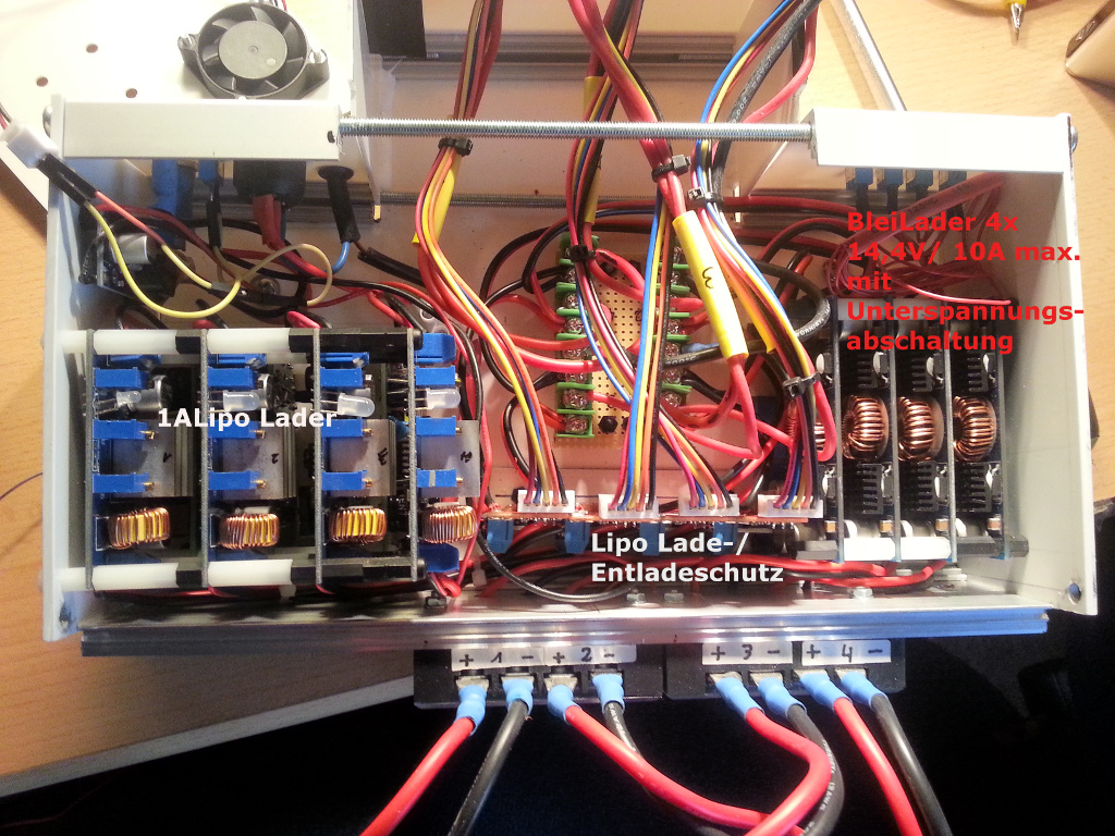 Umgestellt wurde von einem DC/DC 56 Volt StepUp seriell Lader auf 4xDC/DC StepUp/StepDown Lader die jeden Akku einzeln mit max.