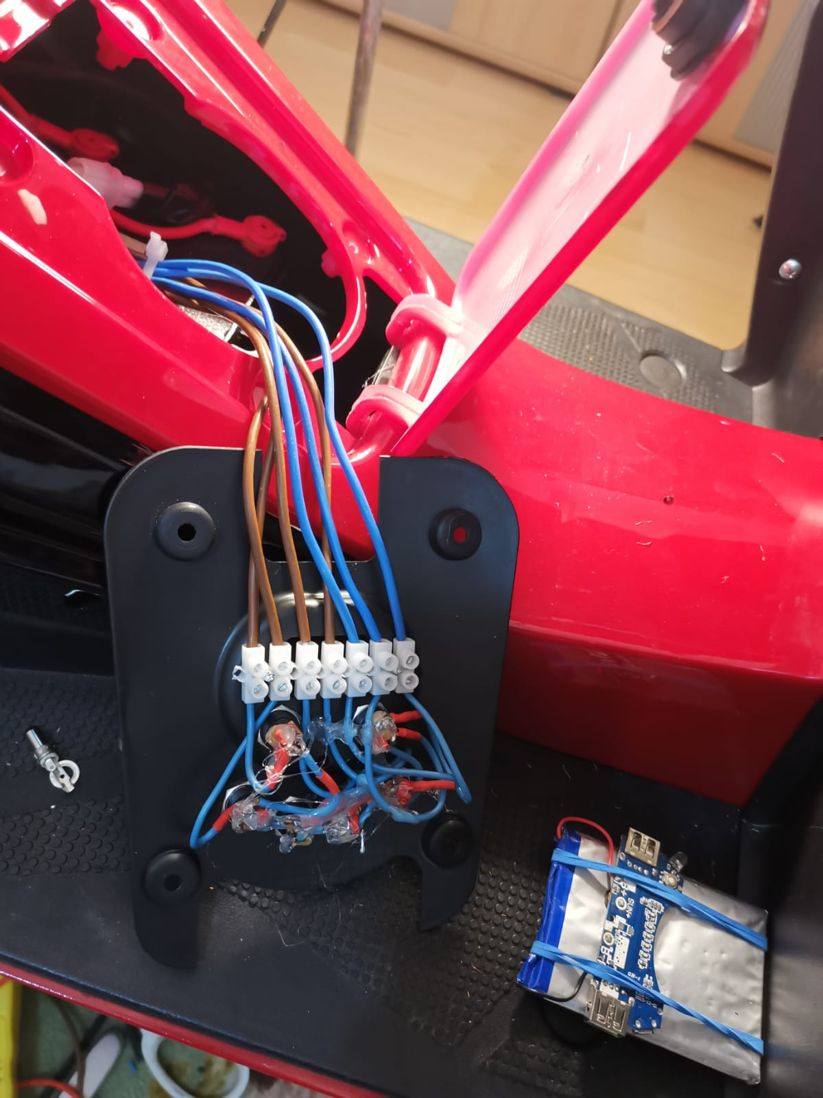 Meine 12-Volt-Batterien sind 20 Ampere-Stunden und können deshalb nicht entnommen und aufgeladen werden, weil sie sehr schwer sind und sich praktisch unter den Kunststoffen des Motors befinden und um alles zu entfernen, was nicht die beste Lösung ist, muss demontiert werden.