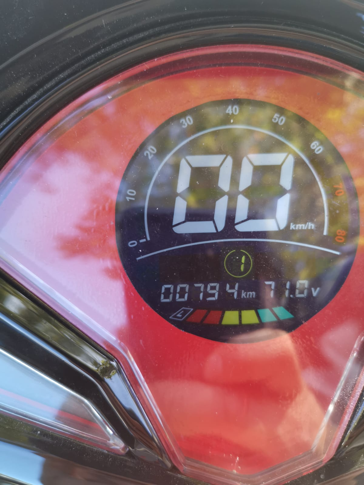 Ich lade den Roller in ca. 5 Tagen auf, wobei die Batteriespannung mindestens 72 Volt beträgt. Am Limit des Minimums. Es gab Fälle, in denen es zu 70% erschöpft war und von hier aus die Frage aufkam, was richtig ist und was nicht.