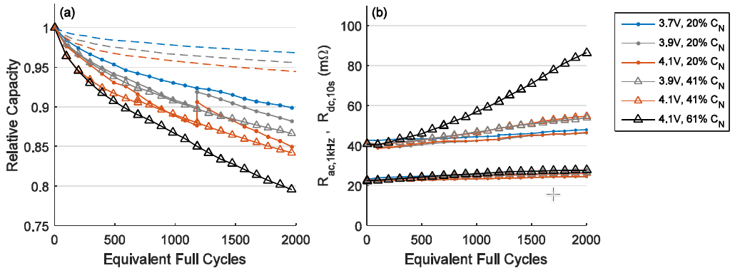 Das hast Du leider falsch verstanden.didithekid hat geschrieben: ↑Do 22. Okt 2020, 22:25The aging study comparing different charging protocols has demonstrated that a lower charging voltage reduces the relative capacity fade at the cost of a lower absolute available capacity, which represents the driving range of the EV. After 1000 EFC, the cell with the maximum charging voltage specified in the datasheet still provided a higher remaining driving range than the cells with a lower charging voltage.