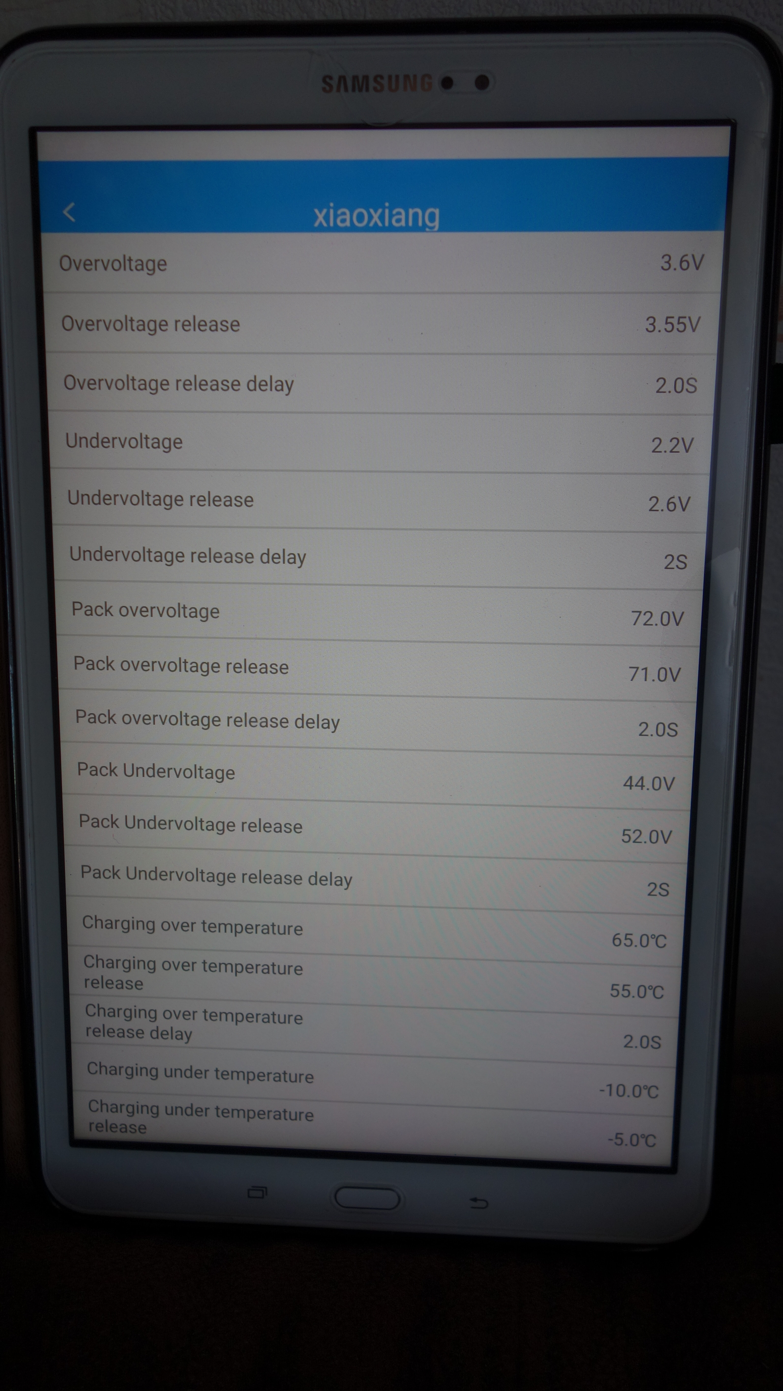 und die "Pack overvoltage" auf 72 V