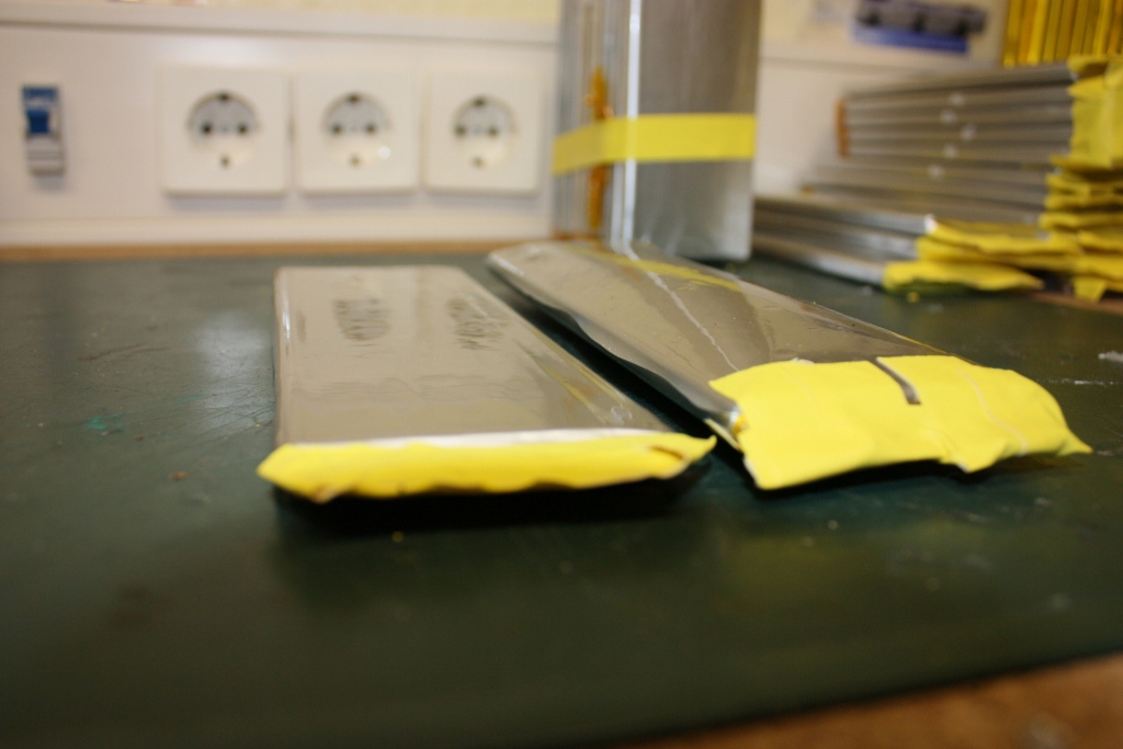 Also das sind LiPo's von 2008 mit 3,7V und 10Ah pro Zelle. Es waren 52 Einzeltüten die so verschaltet waren (gelötgebabt) das es 13 Zellen mit je 40Ah gab.