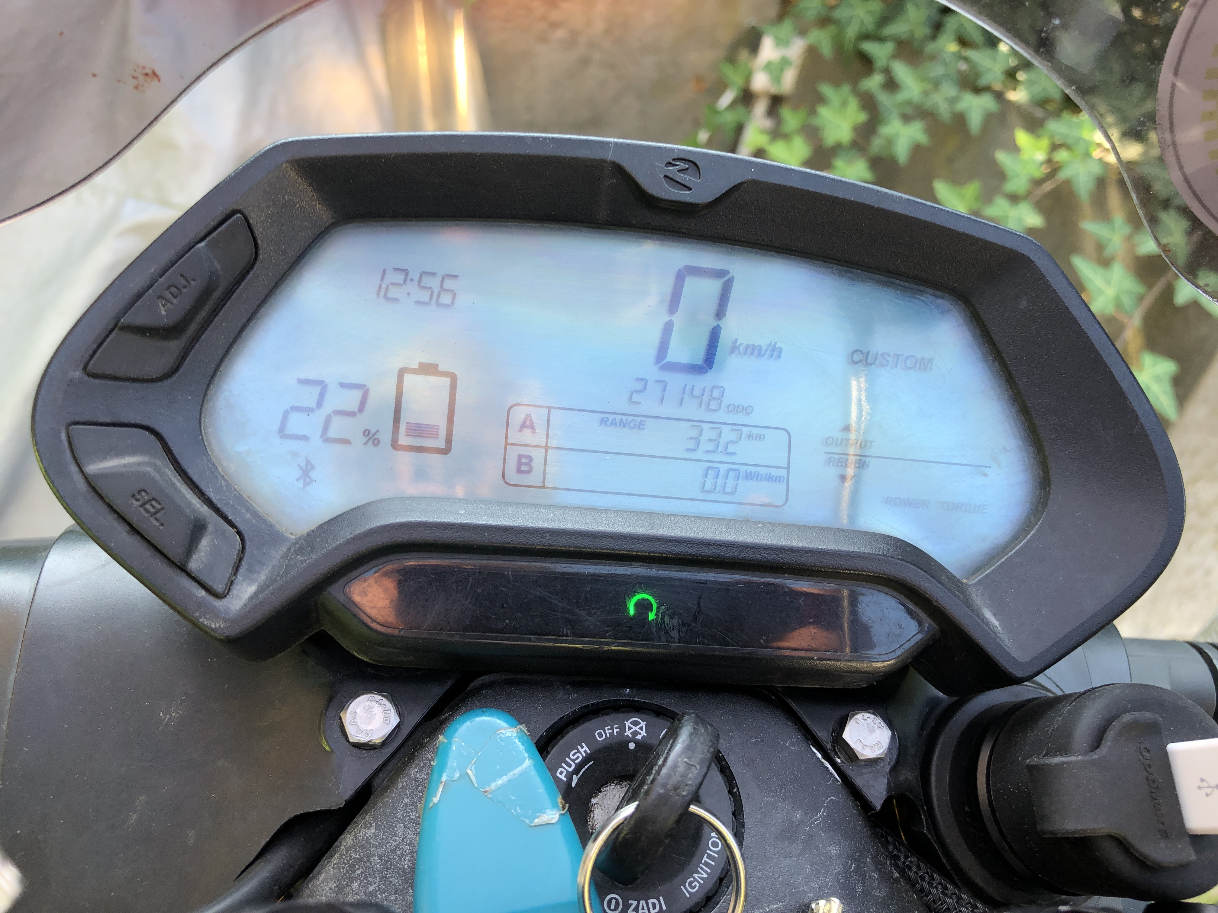 Nach mehreren Stunden angeregten Gesprächen und Essen bin ich dann gegen 22 Uhr wieder zum Hotel auf 1100m gestartet. Die Garage war offen, so dass ich die Zero problemlos einstecken konnte, zum über Nacht wieder aufladen.