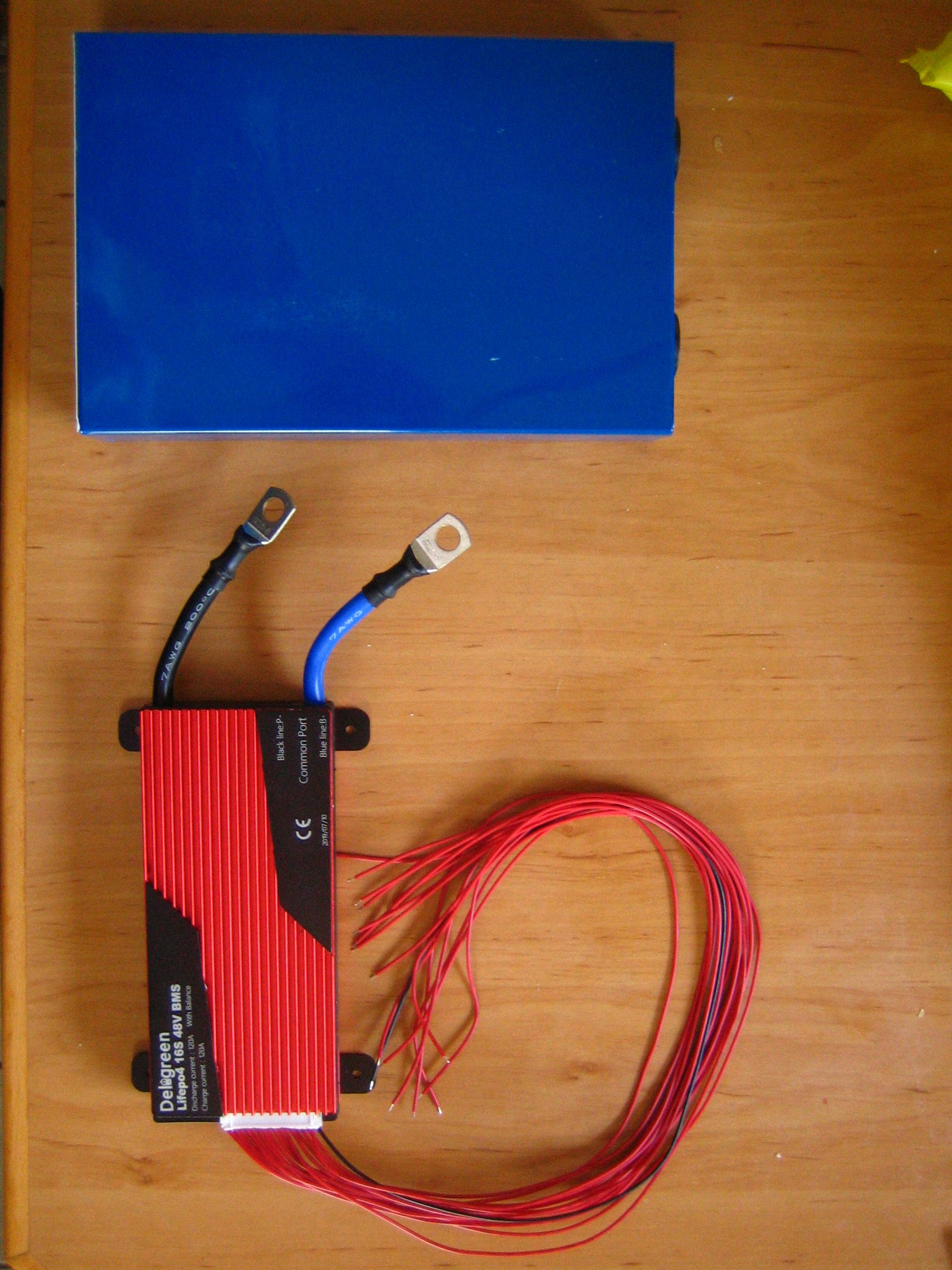 Heute ist die neue 100Ah Zelle gekommen sowie das 120A 16S BMS von Deligreen. Ich werde die neue Zelle mit dem Labornetzgerät mit 5A Ladestrom auf 3,65V bringen und sie dann wieder auf 3,4V entladen damit sie zu den anderen 15 spannungsmäßig paßt. Den Rest soll dann das neue BMS erledigen. Tja, ich habe mich letztendlich gegen das bekannte Smart BMS mit Display entschieden und dann das Deligreen genommen.