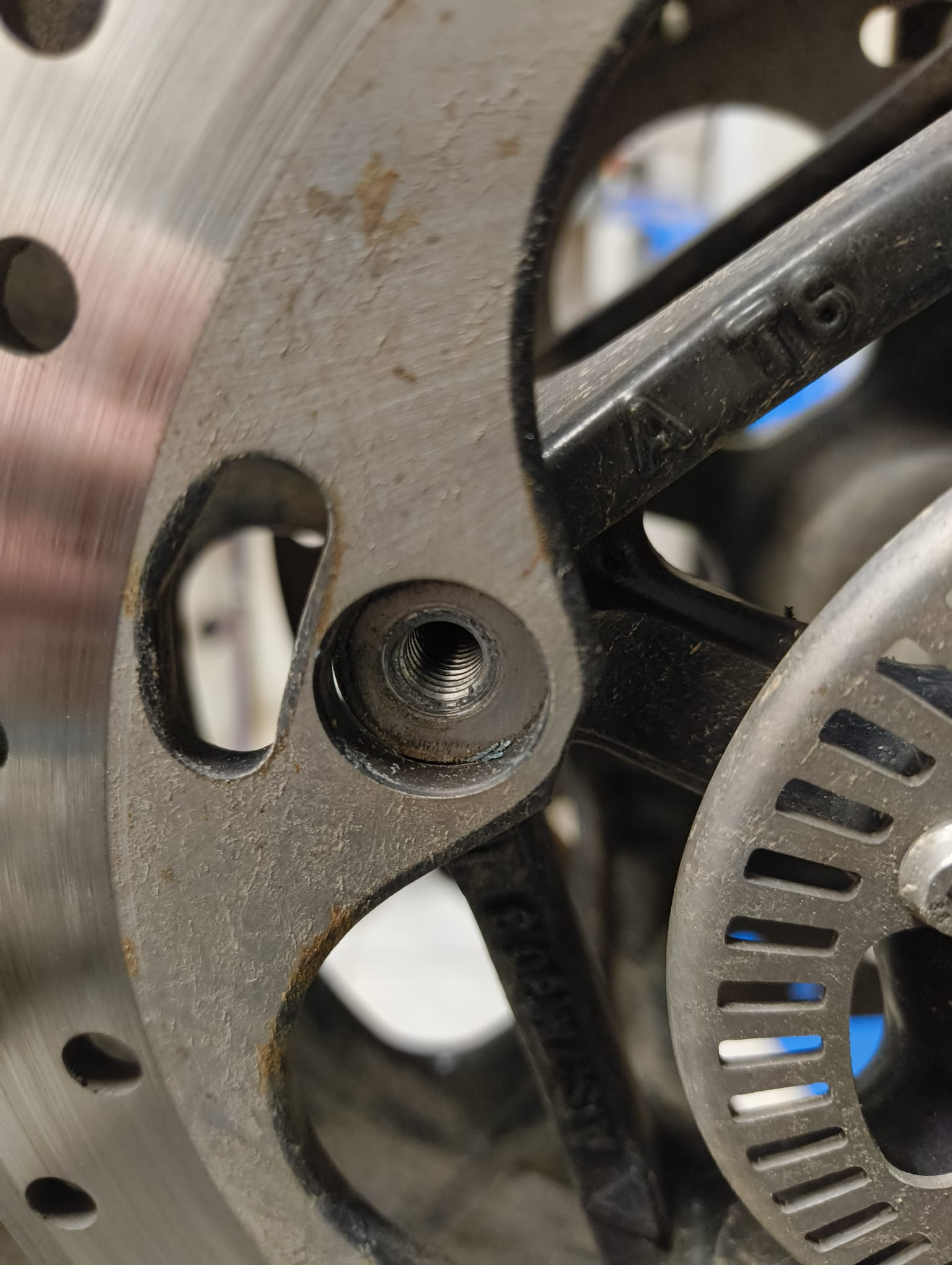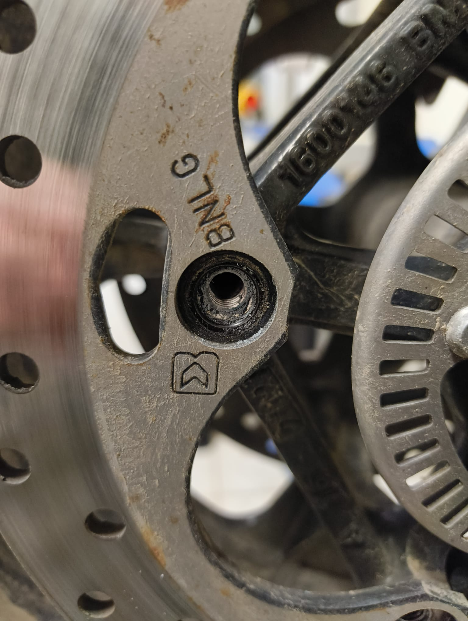 Der Knaller...von den 5 angebrachten Schrauben halten tatsächlich nur 4 die Bremsscheibe :!:
